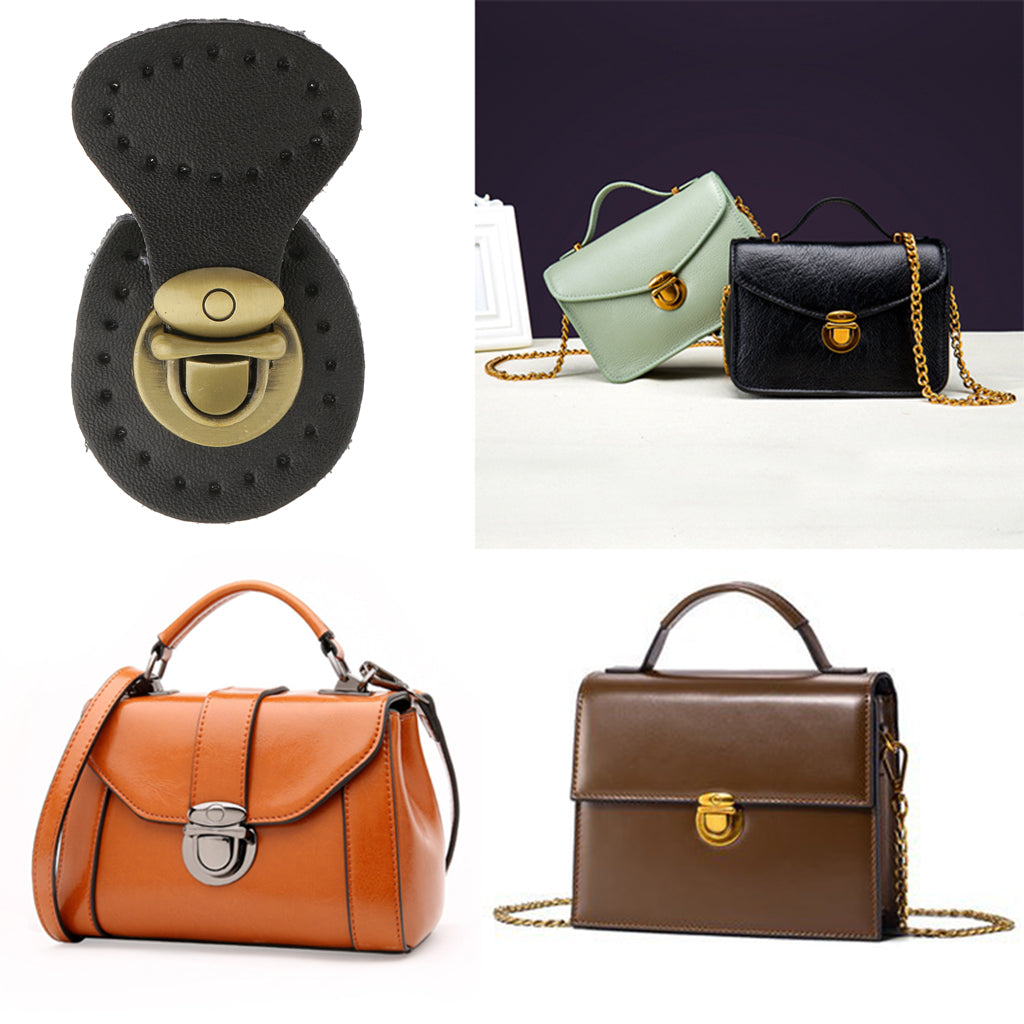 Maxbell Genuine Leather Bag Lock Fasteners Snap Buckles Clasp Replacement Black