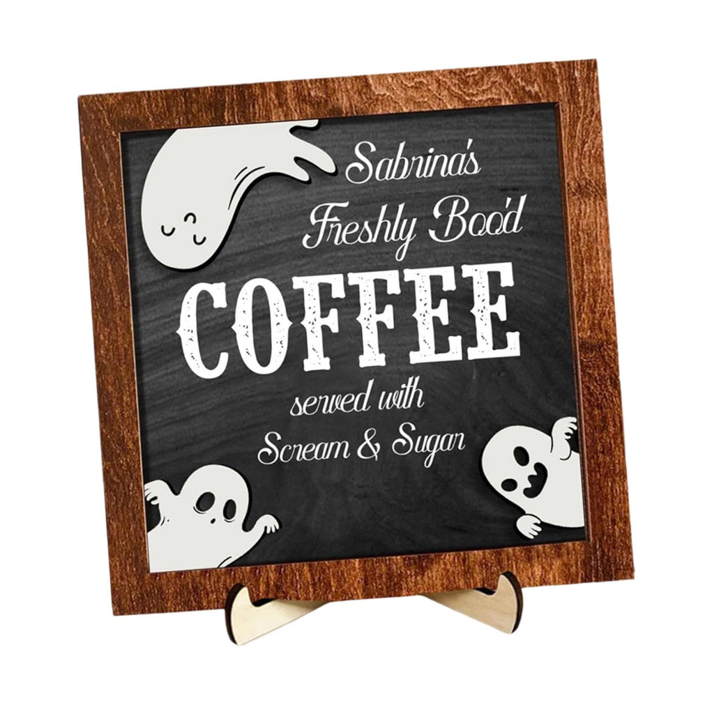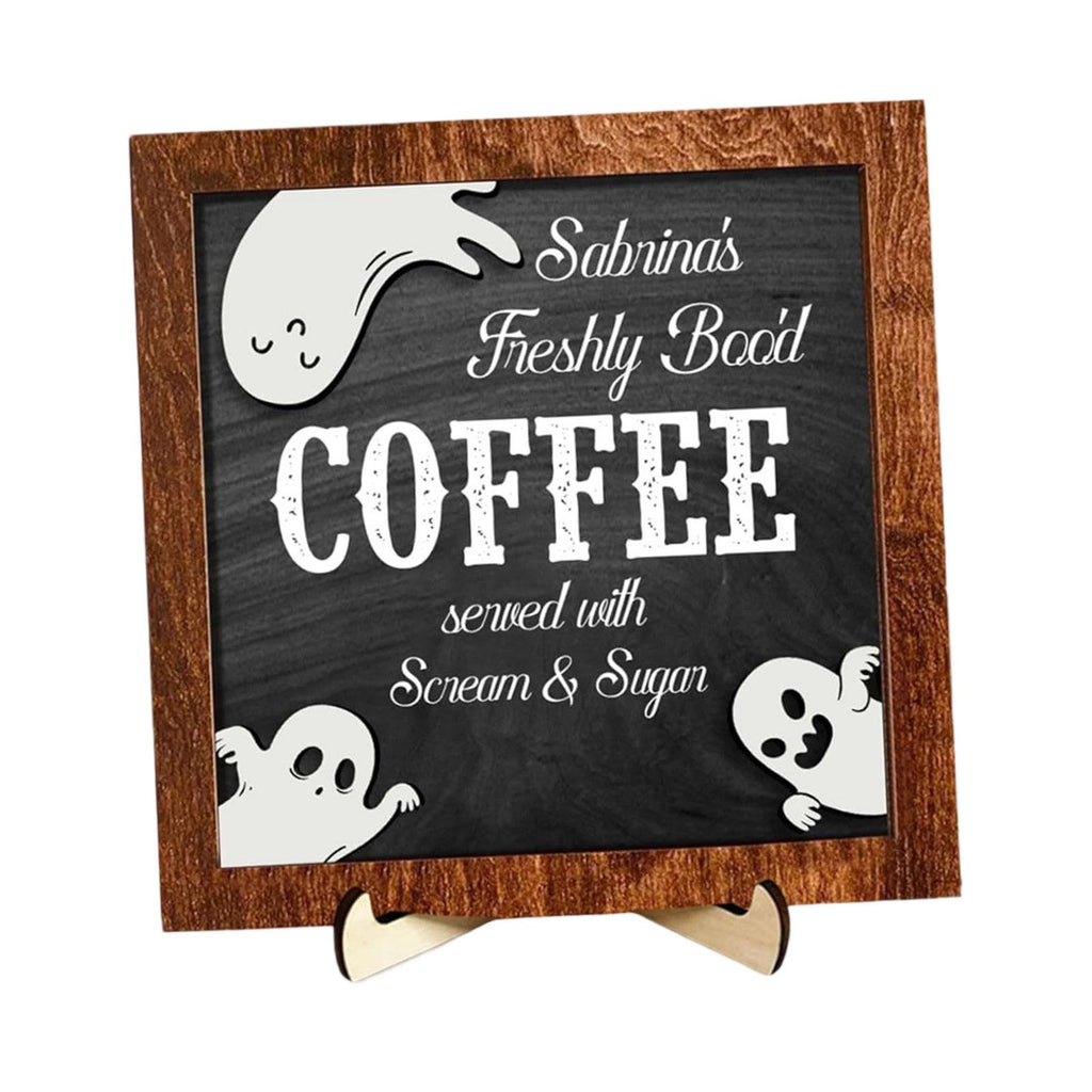 【Spooky Halloween Theme Sign】: This Coffee Sign Features a playful, spooky and cute ghost with quirky typography, adding fun Halloween charm to any space