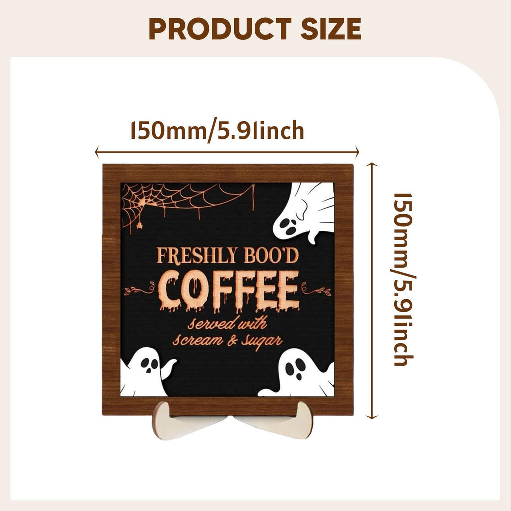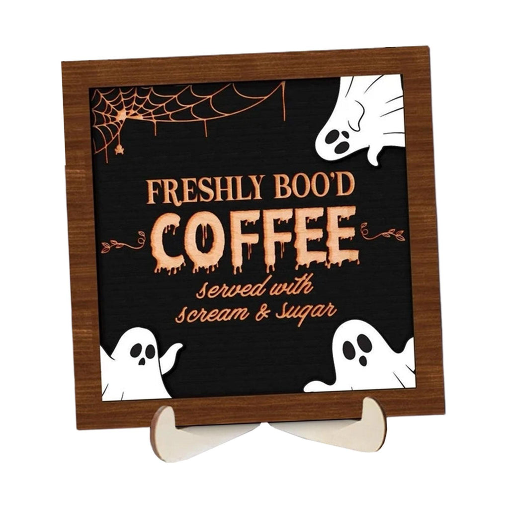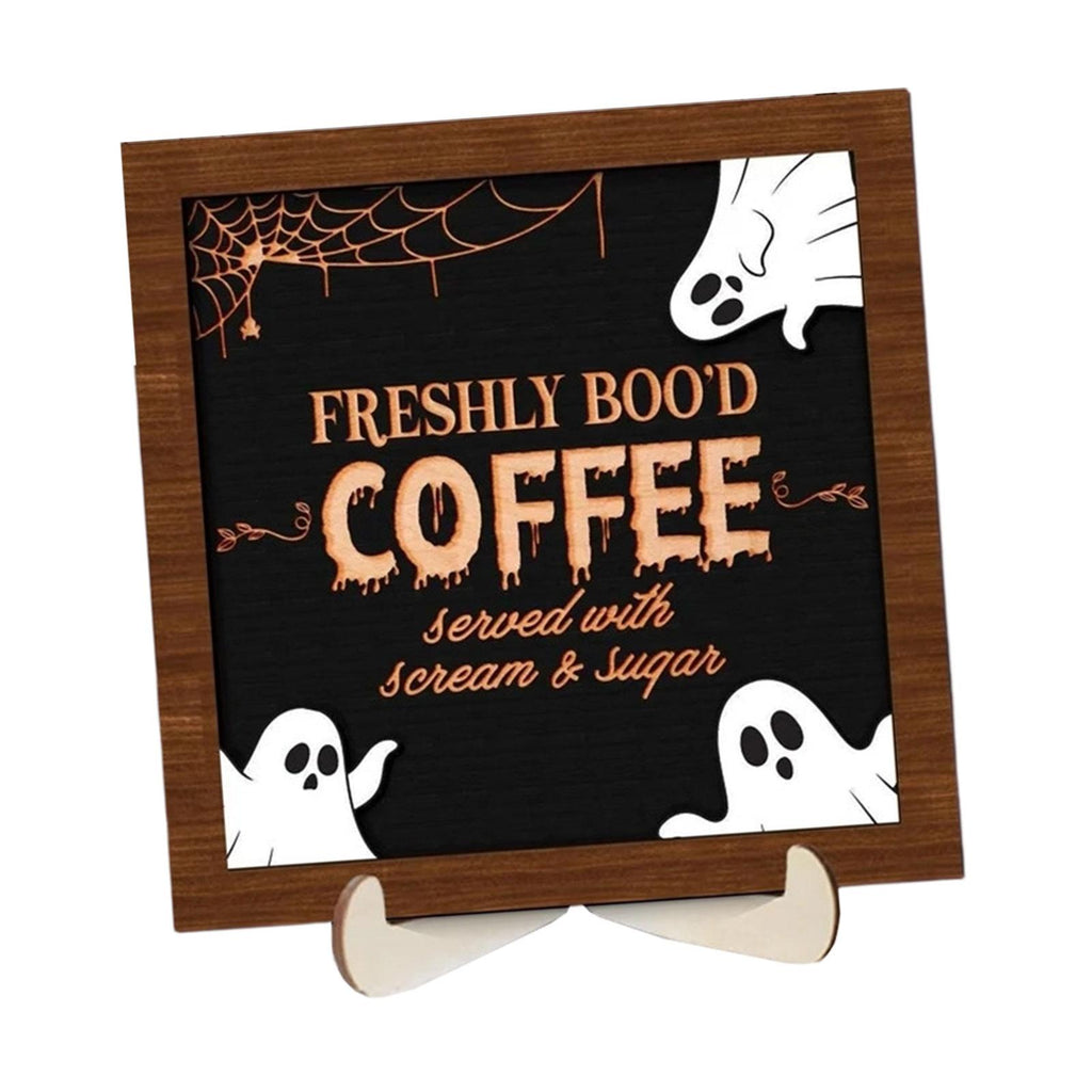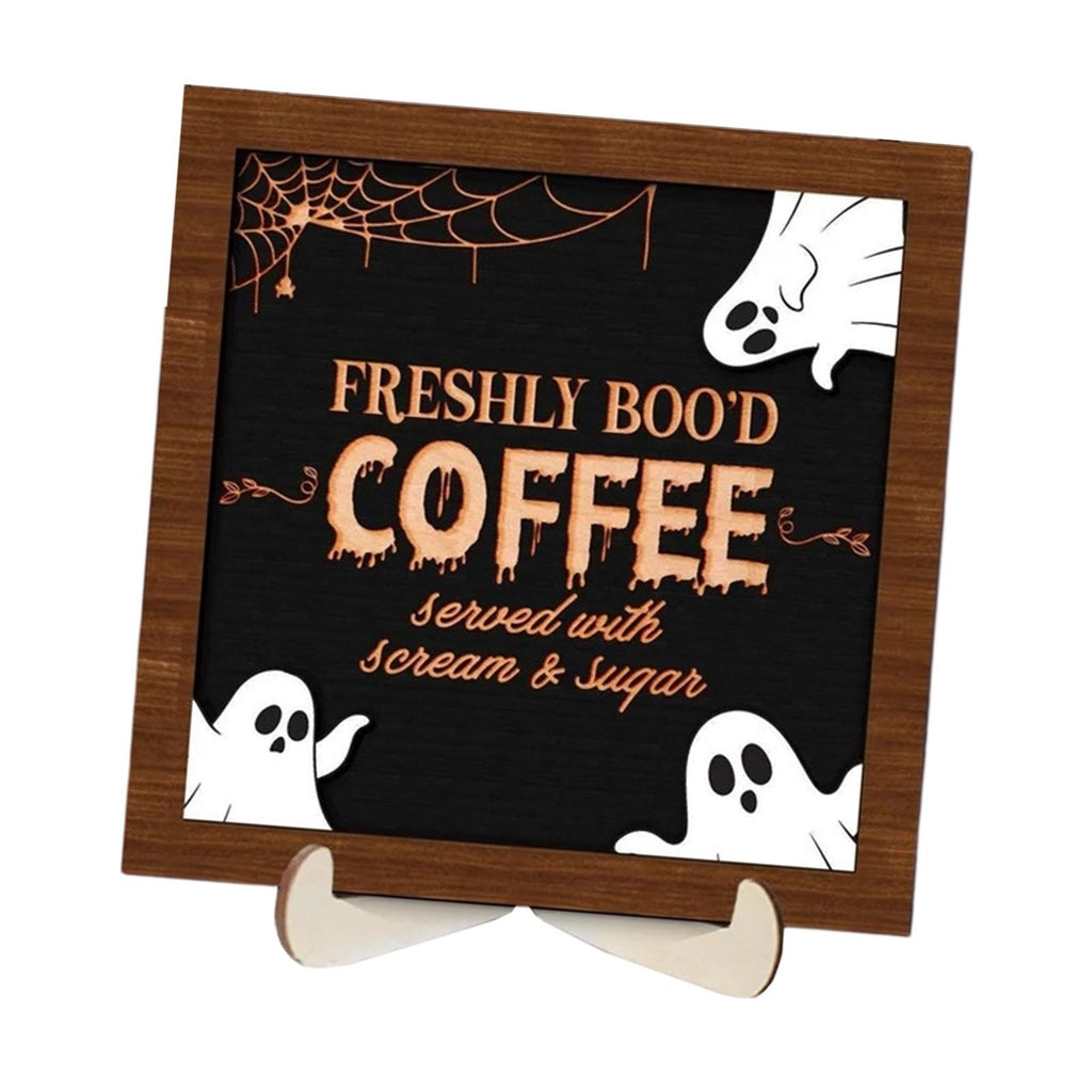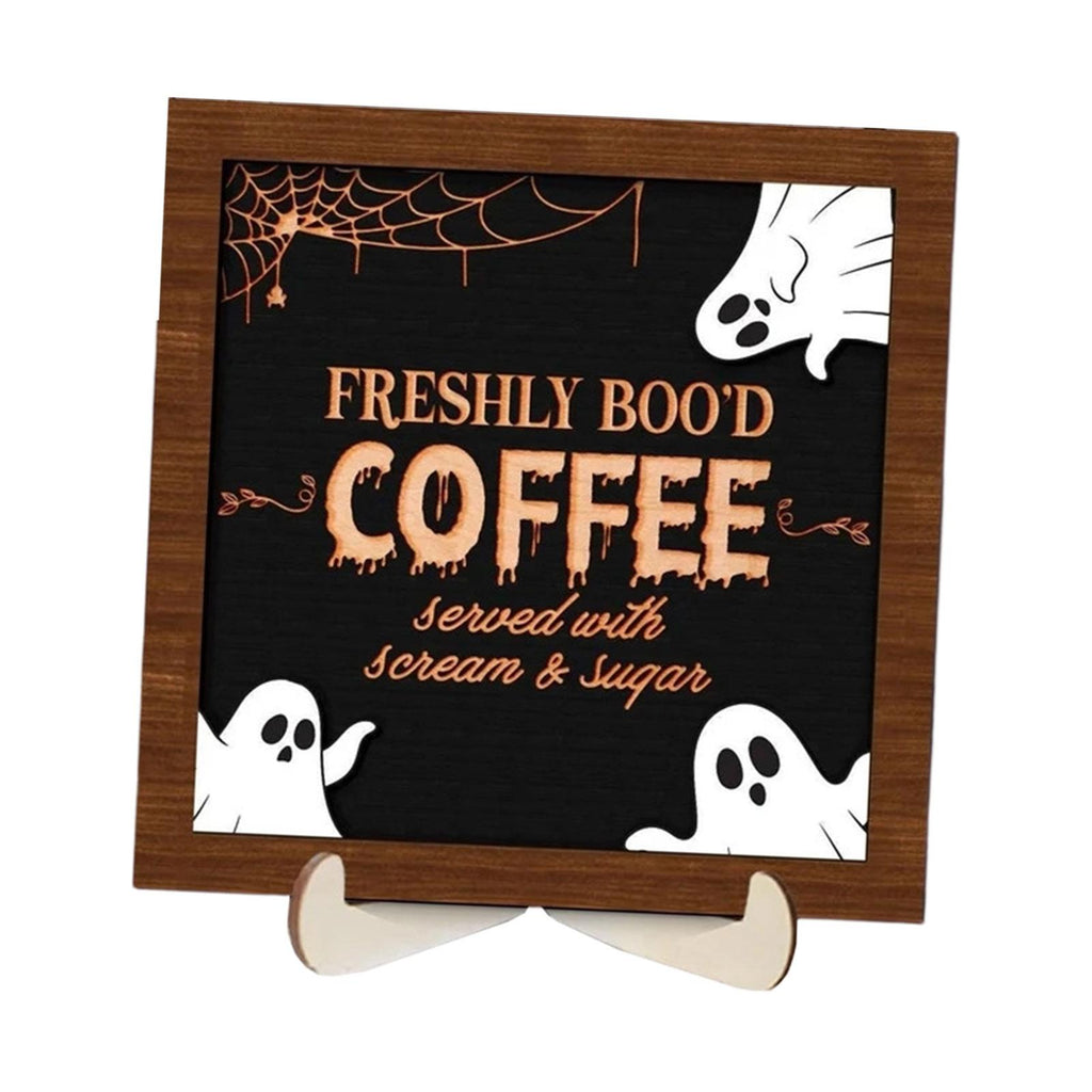 【Material】: Crafted from quality wood, this Halloween Coffee Wooden Sign Decor ensures long term durability and a sleek finish that complements any decor