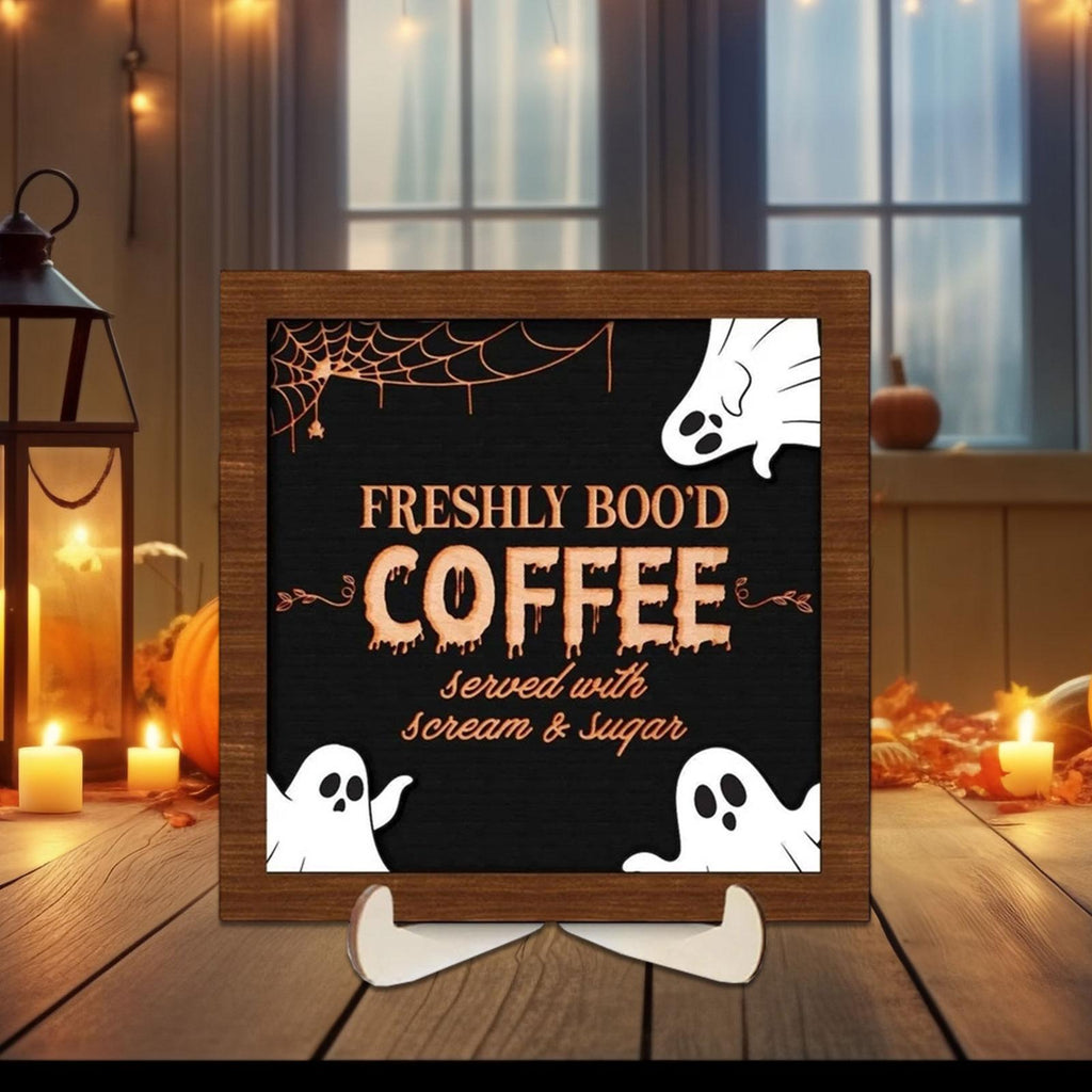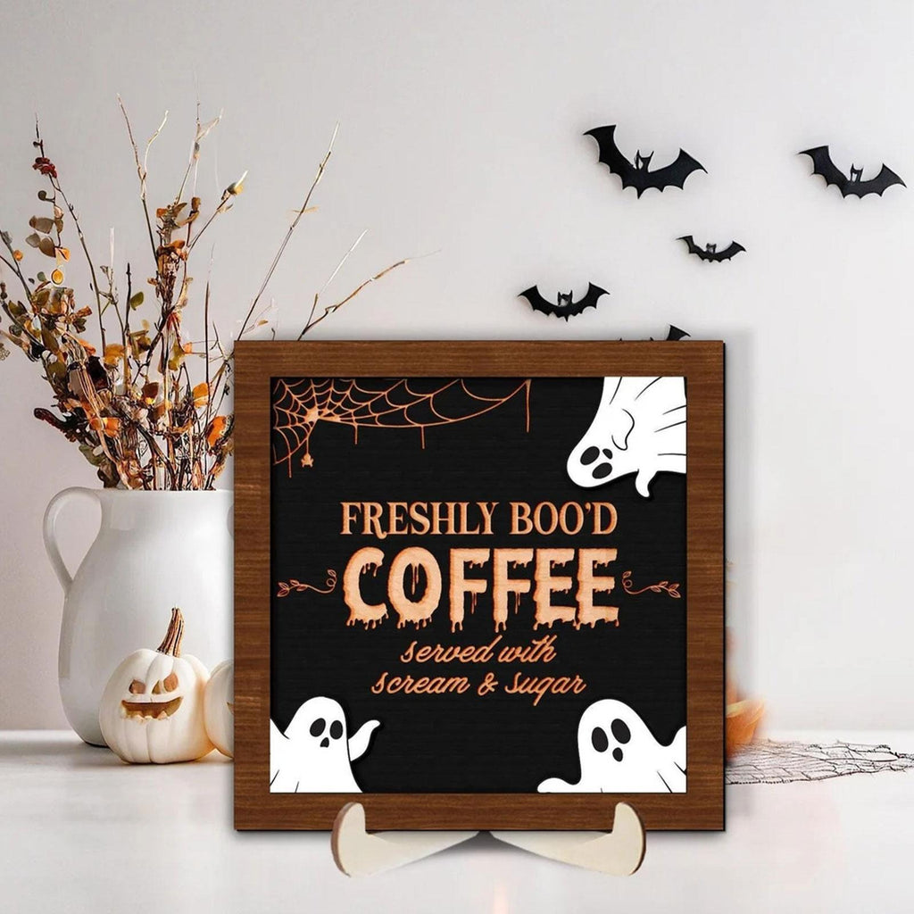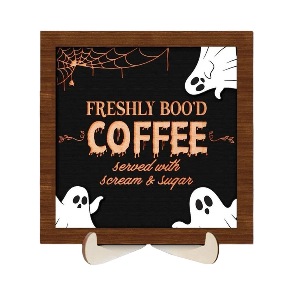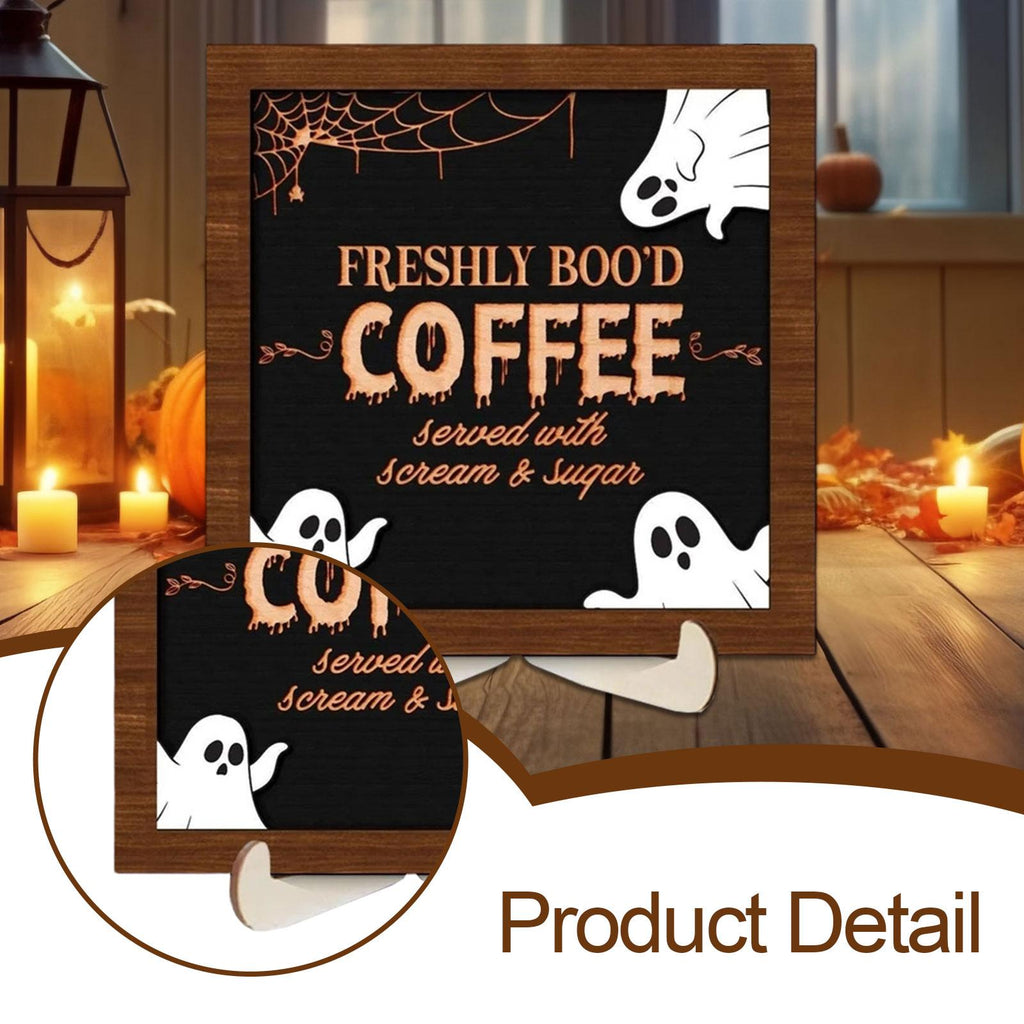 【Spooky Halloween Theme Sign】: This Coffee Sign Features a playful, spooky and cute ghost with quirky typography, adding fun Halloween charm to any space