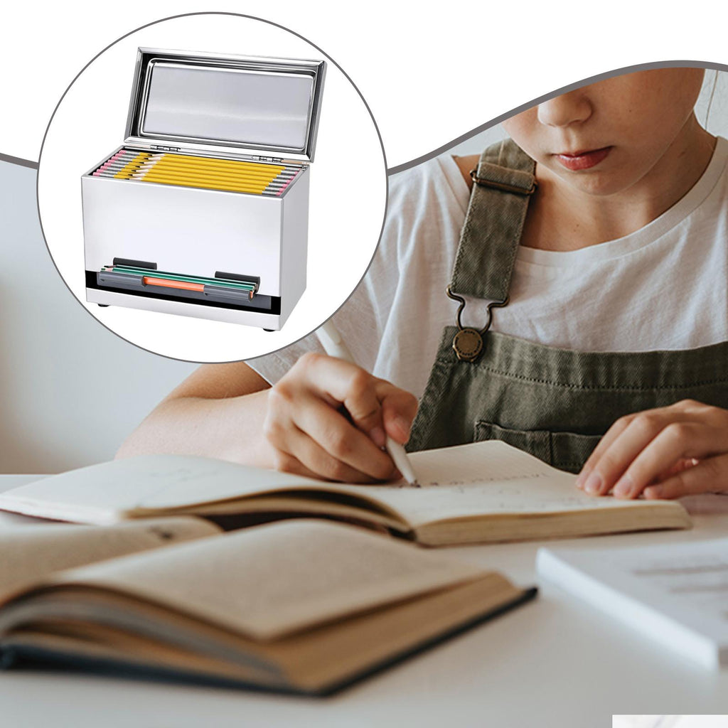 【200+ Pencil High Capacity】: Ideal for busy classrooms, this Stainless Steel Pencil Dispenser holds 200+ writing tools, no more constant refills during lessons, with dust proof hinged lid keeping supplies clean