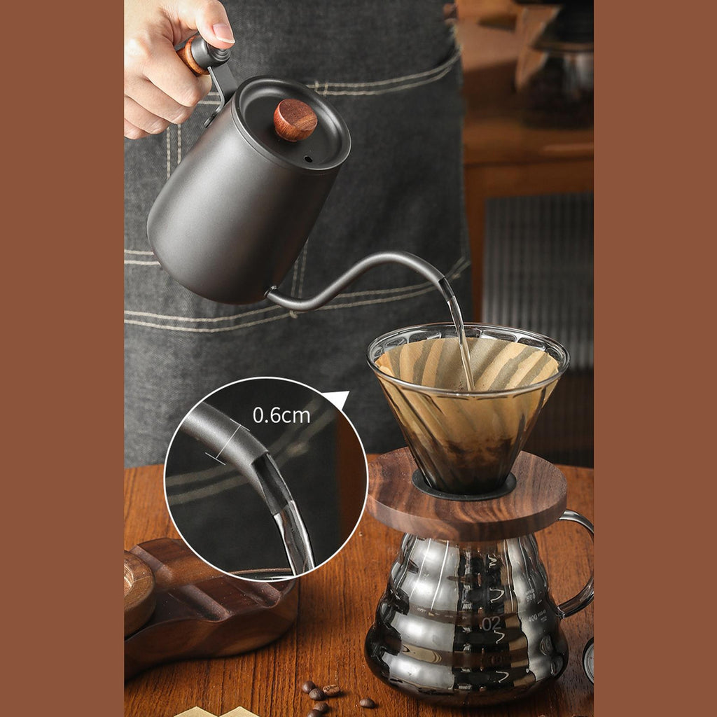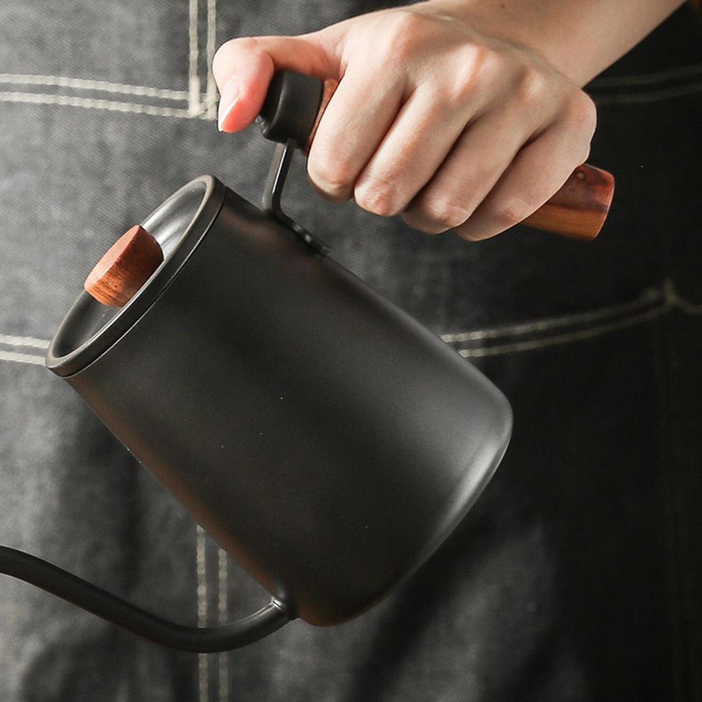 Maxbell Stainless Steel Pour Over Coffee Kettle with Wood Handle Comfortable Grip Black