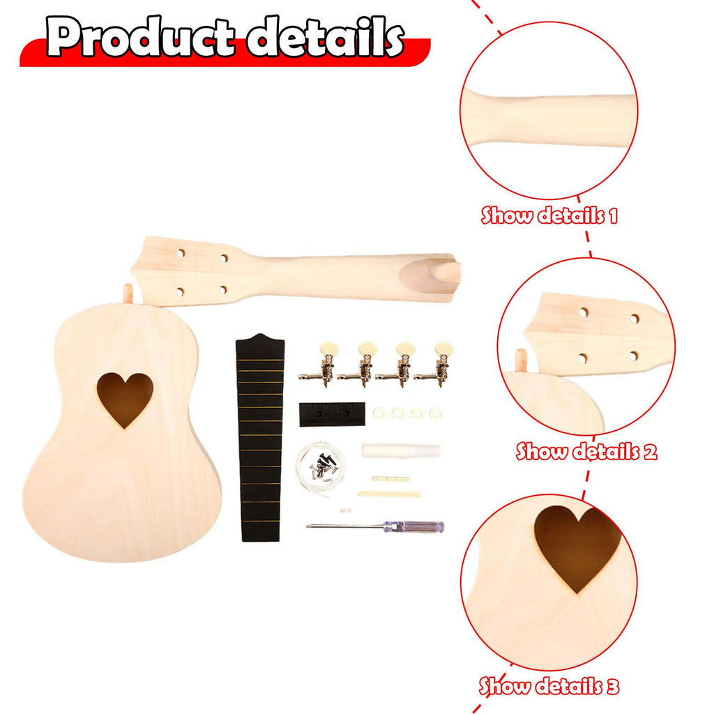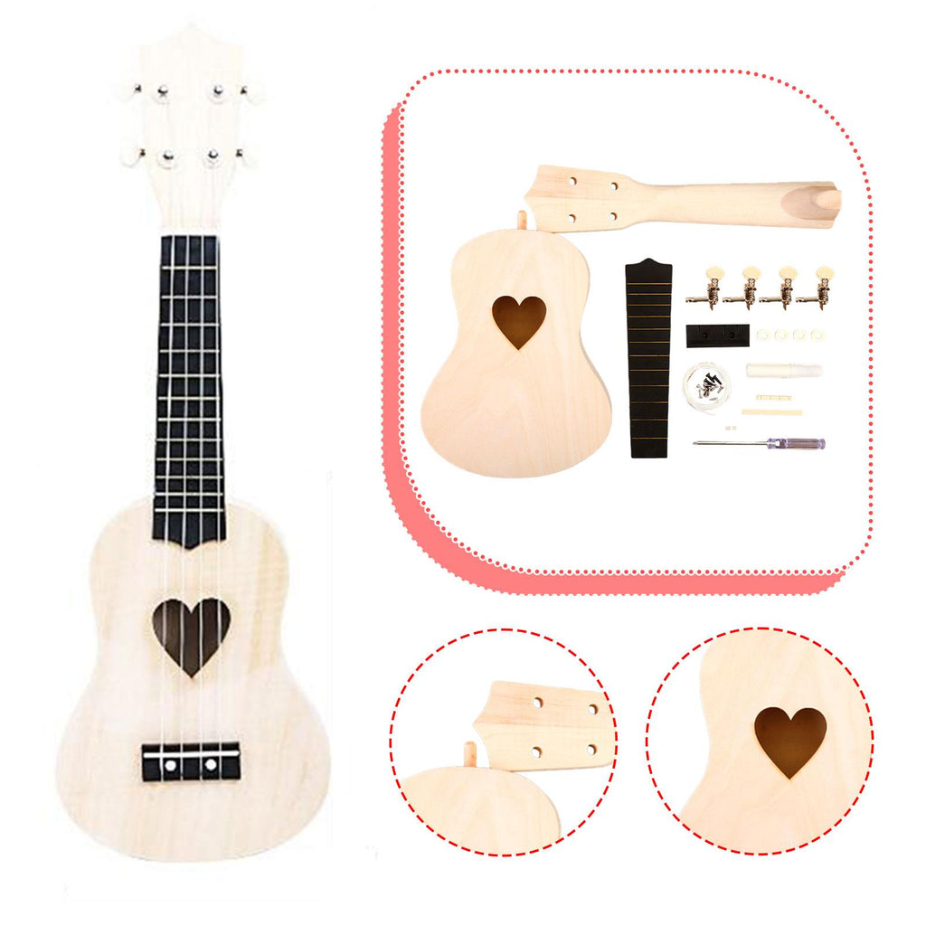 Maxbell Ukulele DIY Kit with Full Accessories Craft Handicraft Handmade Assembly Toy Heart