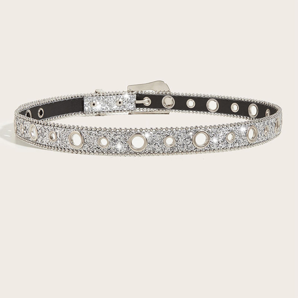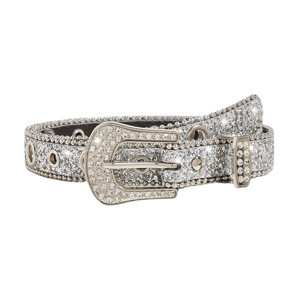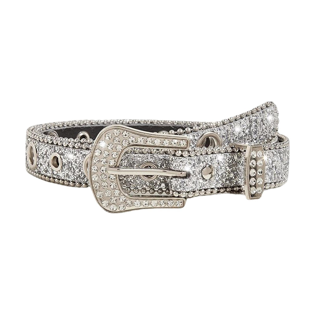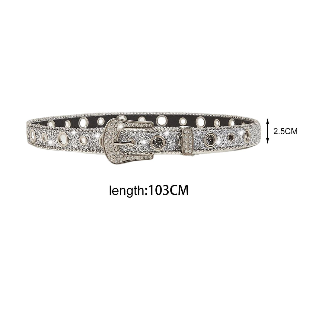 PU Leather Belt: Modern PU Leather Waist Belt with metal buckle and rhinestone decoration, fashion,and glitter.
