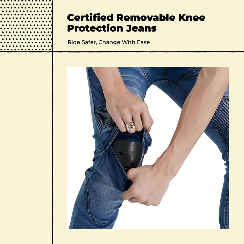 [Sturdy Motorcycle Pants for All Seasons] These motorcycle pants feature certified protection and windproof fabric, offering dependable comfort for both men and women during riding, touring, or common commuting. [Removable Knee and pelvis Pads] Equipped with removable certified-approved pads at the knees and pelviss, these riding jeans provide enhanced protection and flexibility for various riding scenarios. [Reinforced and Comfortable Design] Made with reinforced stitching and abrasion-resistant jeans fabric fabric, these pants ensure durability and comfort for long rides and touring adventures. [Versatile for Multiple Activities] Perfect for motocross, cycling, motorbiking, and informal wear, these motorcycle jeans adapt to vernal, autumn, and winter conditions, making these pants a practical choice for riders. [Gender-Neutral Fit and Size choices] Designed for both men and women, these motorcycle pants offer a comfortable fit and are available in various sizes to suit different physique style.Specification: