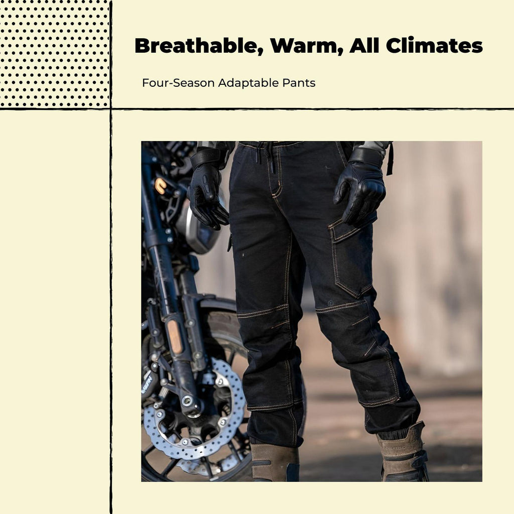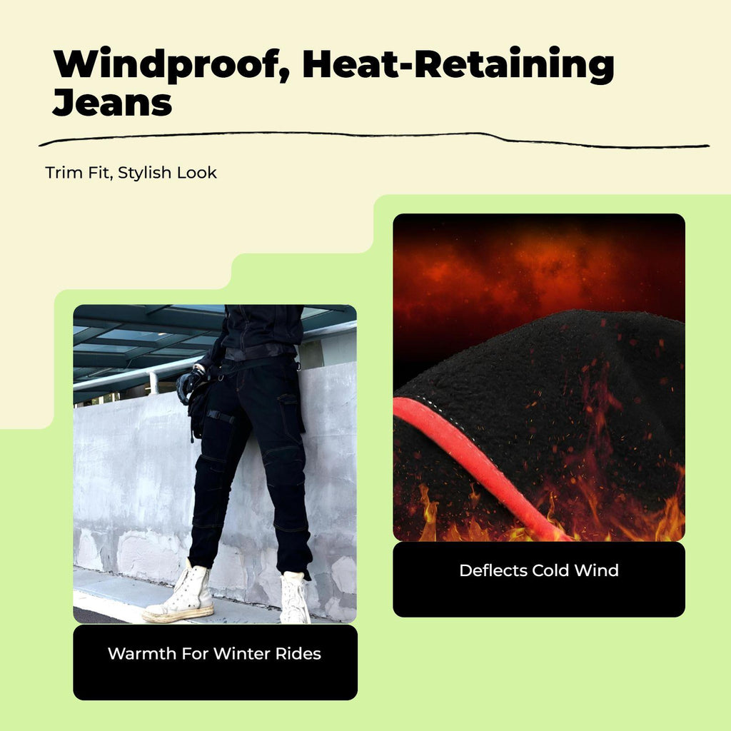 Motorcycle Riding Pants, Winter Windproof Jeans, Protective, Streamlined & Snug Black 3XL