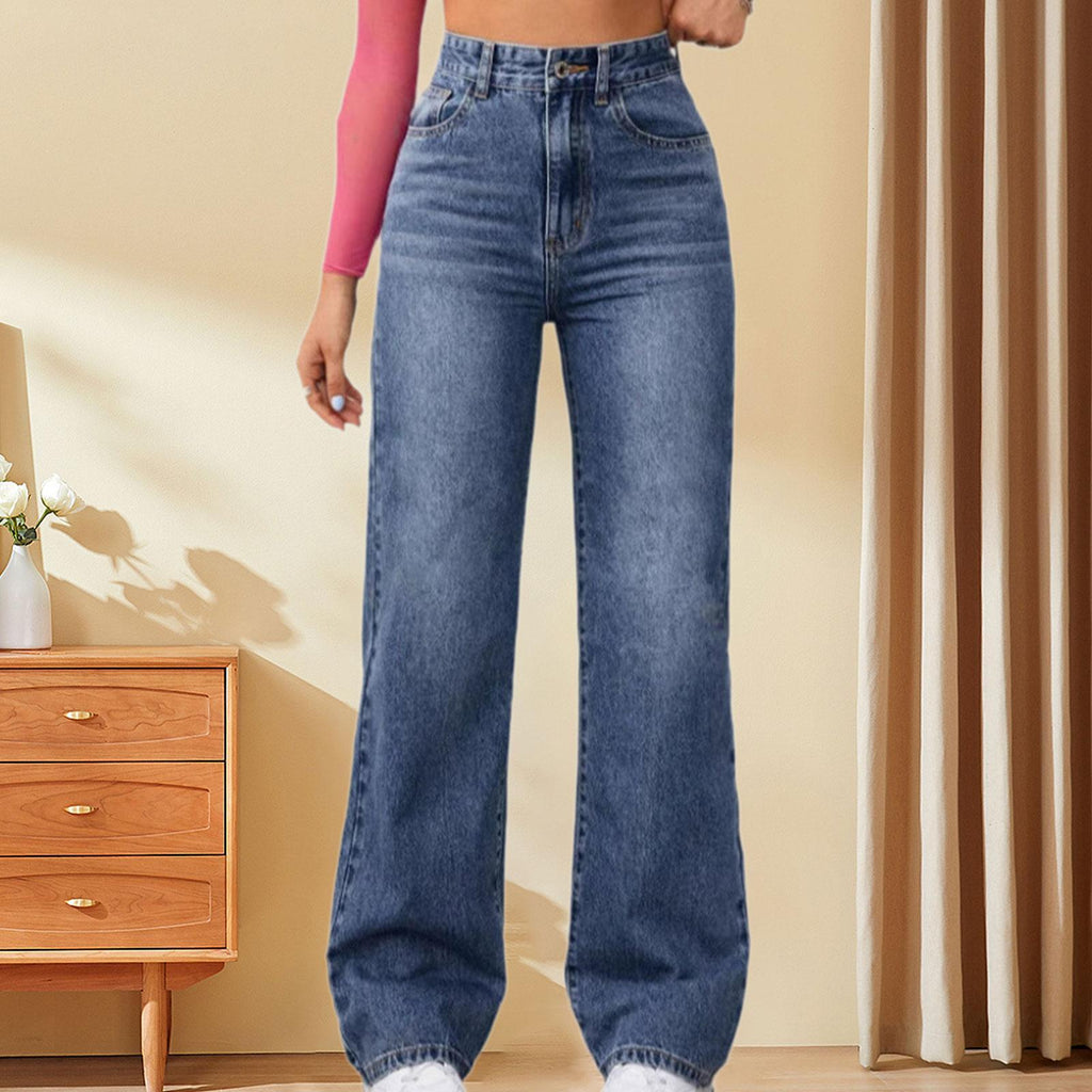 Maxbell Women's Wide Leg Jeans Straight Leg Comfortable Trousers Loose Women's Jeans S