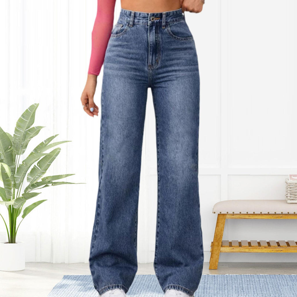 - 【Features】: High Waisted Jeans, loose straight leg strechy, casual, wide leg Jeans, with pockets. A Classic that makes you look different