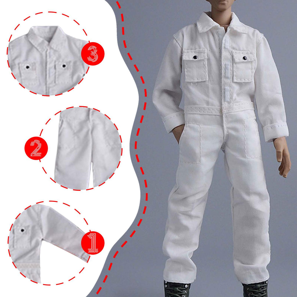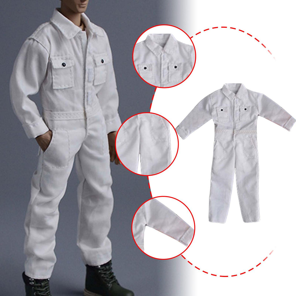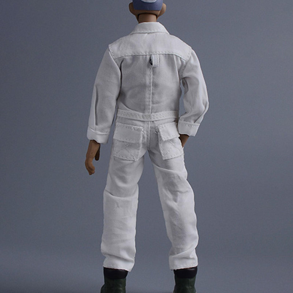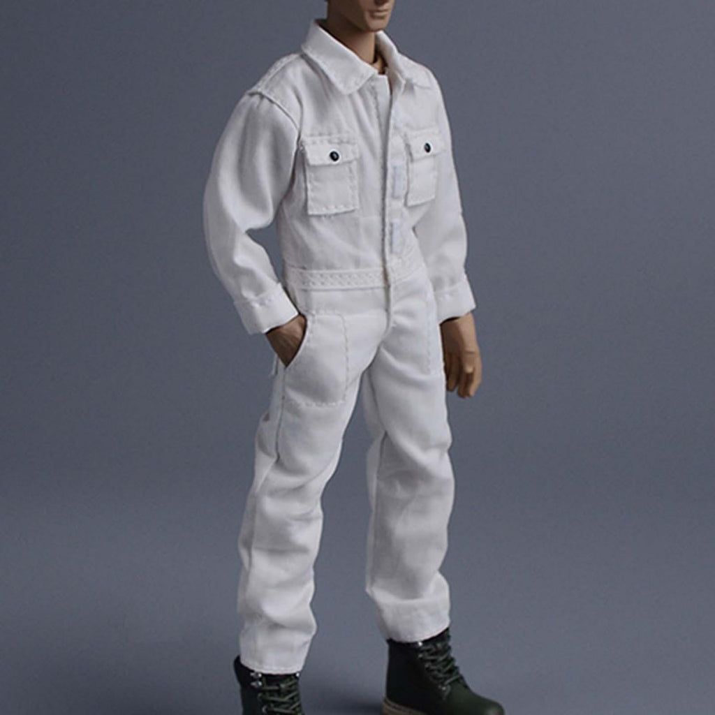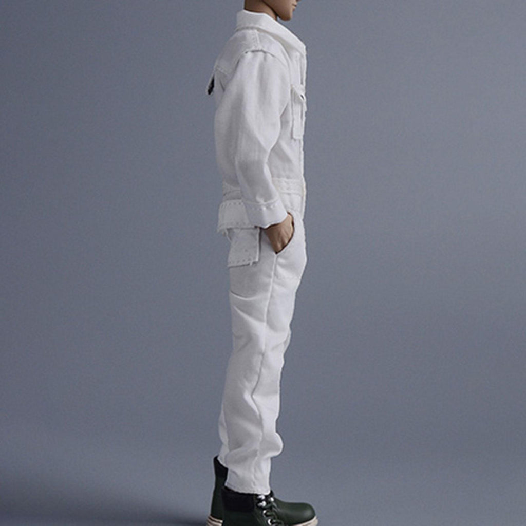 Maxbell 1/12 Scale Action Figure Clothes Men Jumpsuit Doll Clothes for 6" Male Dolls White