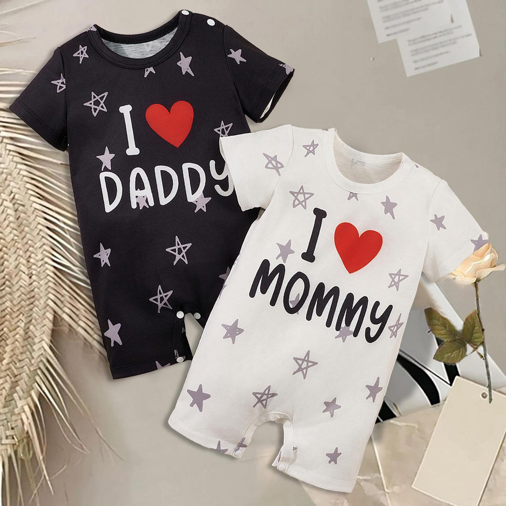Maxbell 2Pcs i Love Mummy Daddy Breathable Summer Baby Jumpsuit Set for Home Holiday 12 to 18Month
