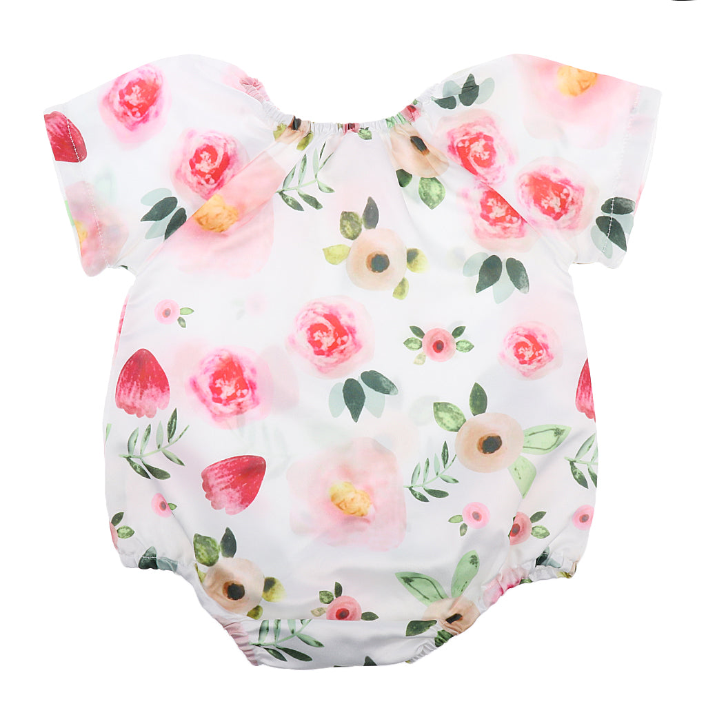 Maxbell Baby Rompers Dress Short Sleeve Floral Jumpsuits One-Pieces Pants 80cm