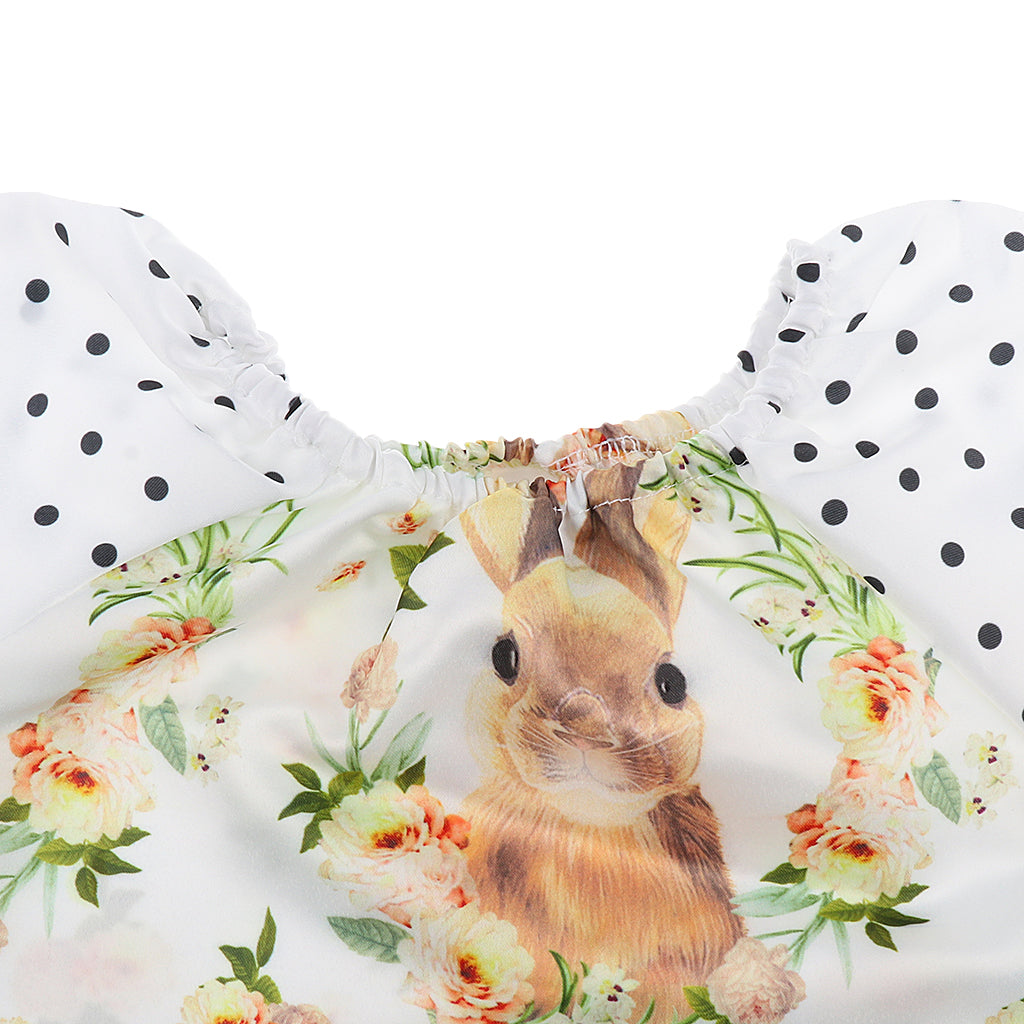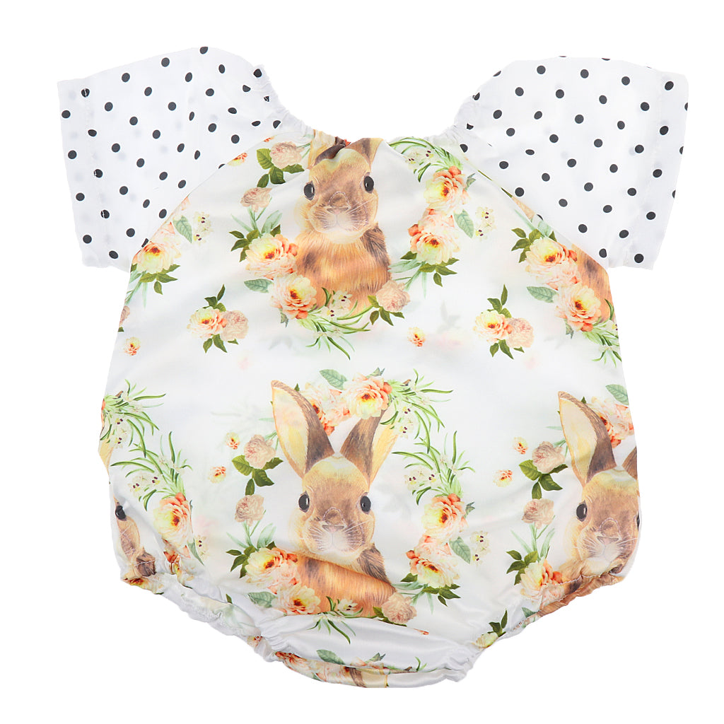 Features: One-Pieces, cute rabbit printed, short sleeve, polk dots.