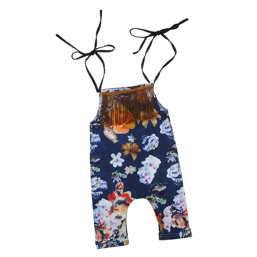 Baby girls floral tassel romper jumpsuit bodysuit, casual modern style, cool and beautiful for spring, summer and autumn.