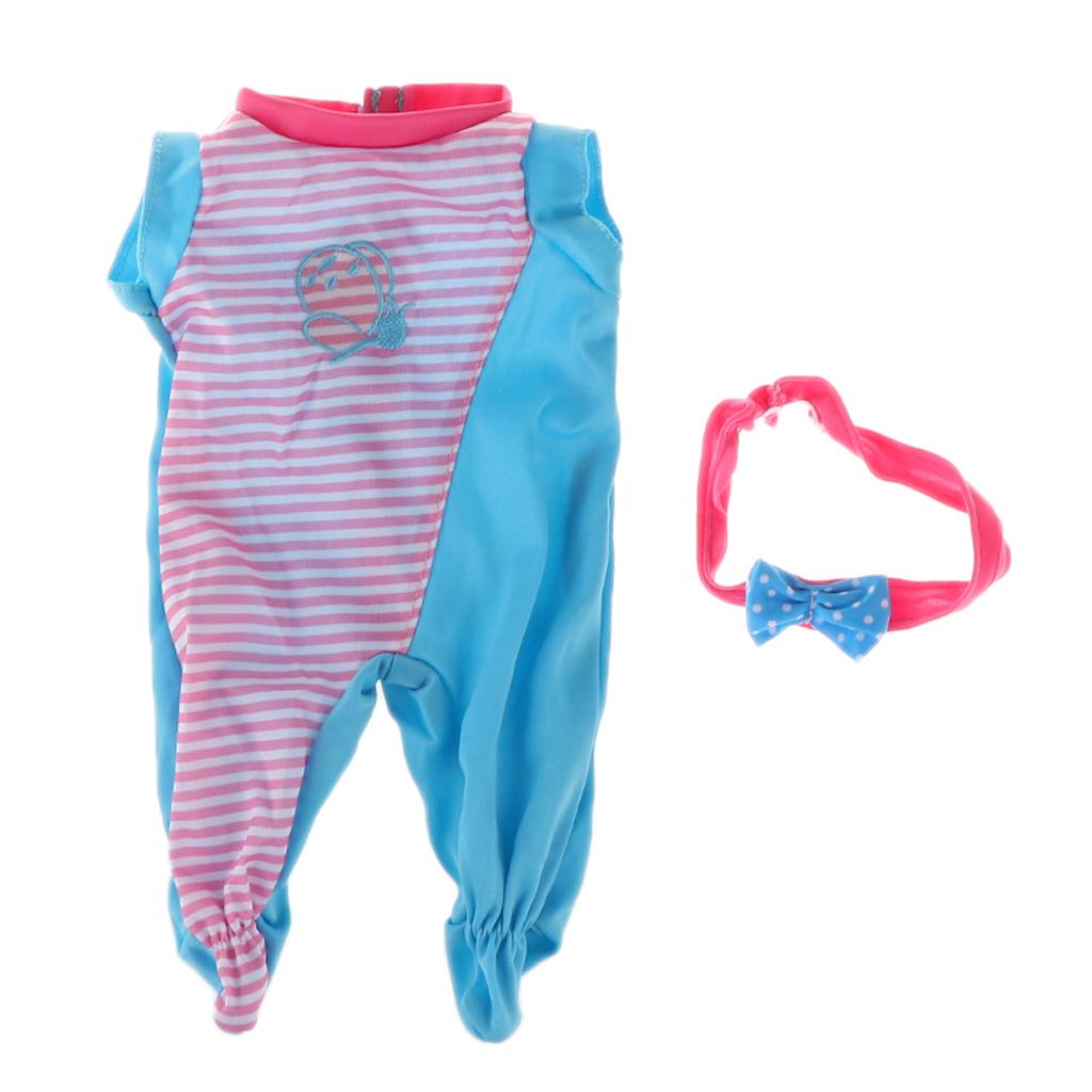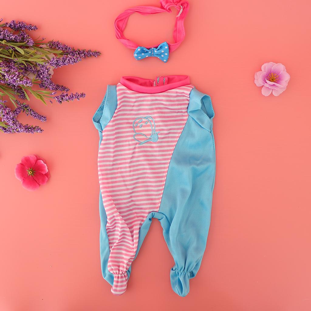 Cute Handmade Doll Clothes Set Soft Haif Striped Romper Jumpsuits And Hairband