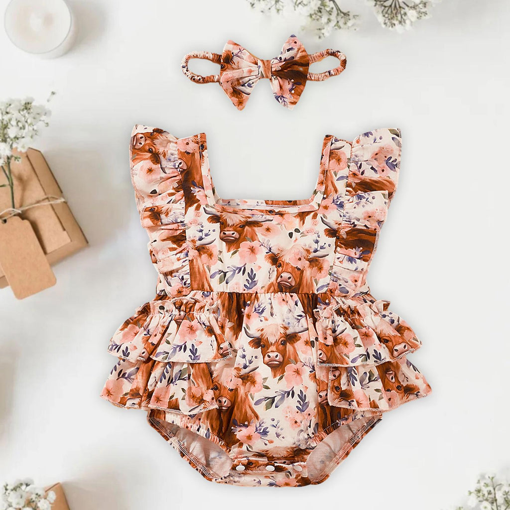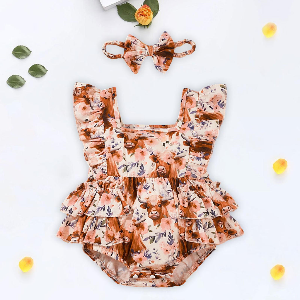 【Package Includes】: Set comes with 1 girl romper and 1 headband, making it a complete outfit for your baby girl.