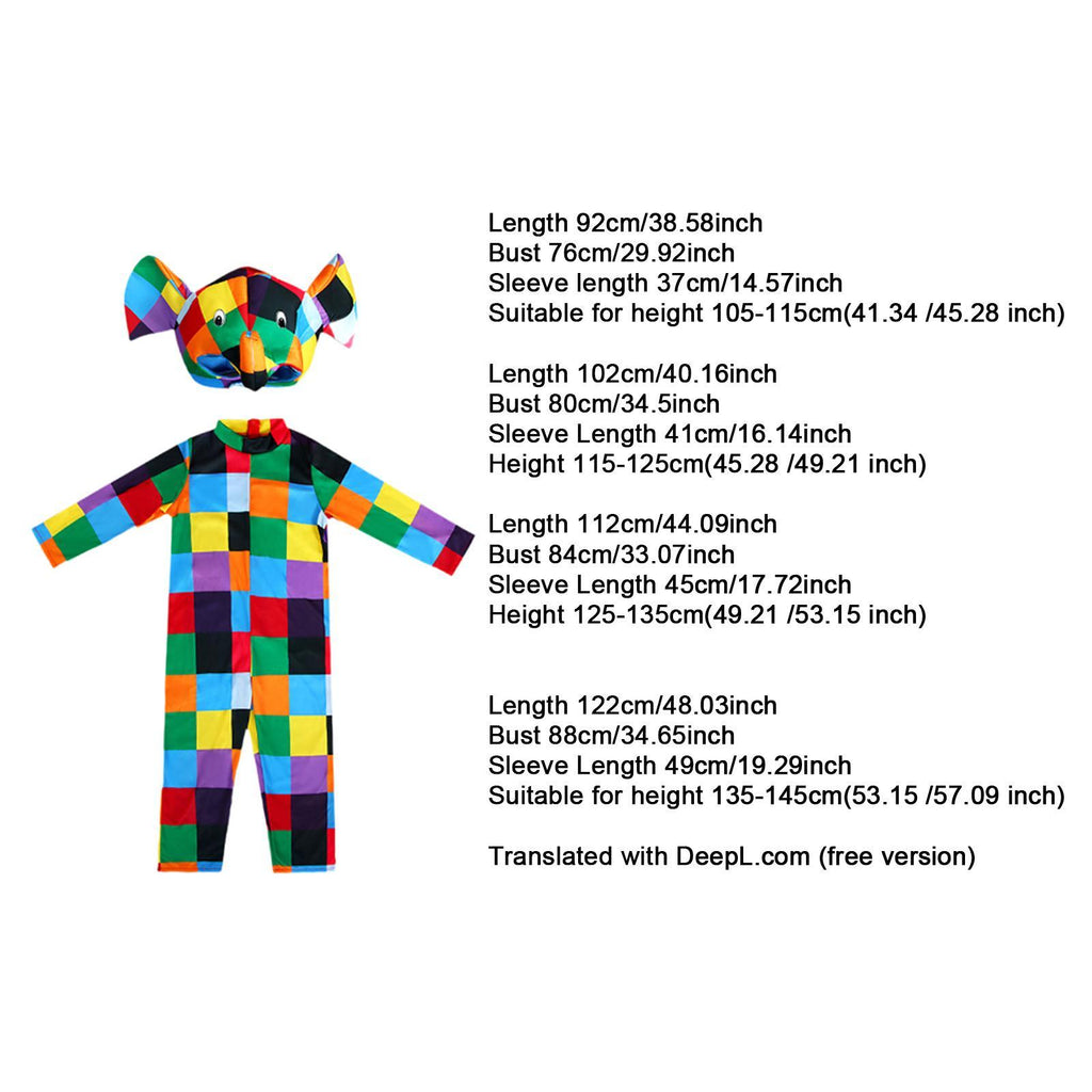 【Charming Design】: This children's costume features patchwork elephant design that captivates kids' imaginations. The adorable headpiece with elephant facial features adds a playful touch, allowing children to transform into a cute patchwork elephant and enjoy endless role playing fun