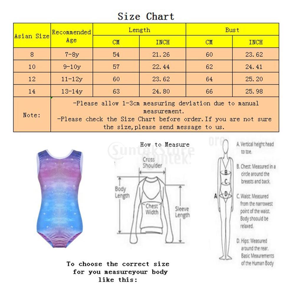 Size 10: Bust: 62cm / 24.41inch; Length(Shoulder to crotch): 57cm / 22.44inch; Recommend Age: 9-10Years
