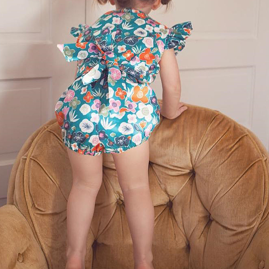 Baby girls cute floral romper jumpsuit bodysuit, casual modern style, cool and beautiful for spring, summer and autumn.