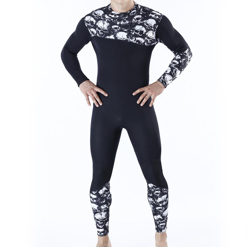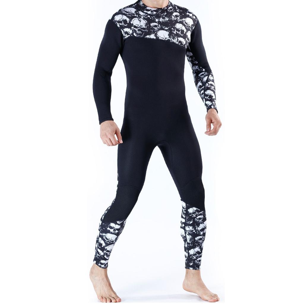 Maxbell Men 3mm Diving Wetsuit One-Piece Long Sleeve Wet Suit Jumpsuit Skull M