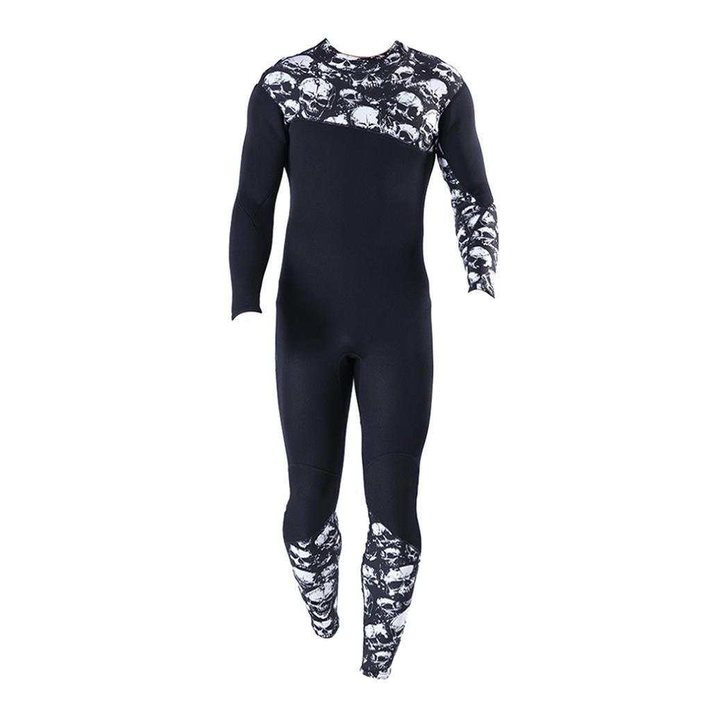 Maxbell Men 3mm Diving Wetsuit One-Piece Long Sleeve Wet Suit Jumpsuit Skull S