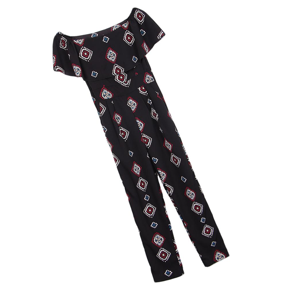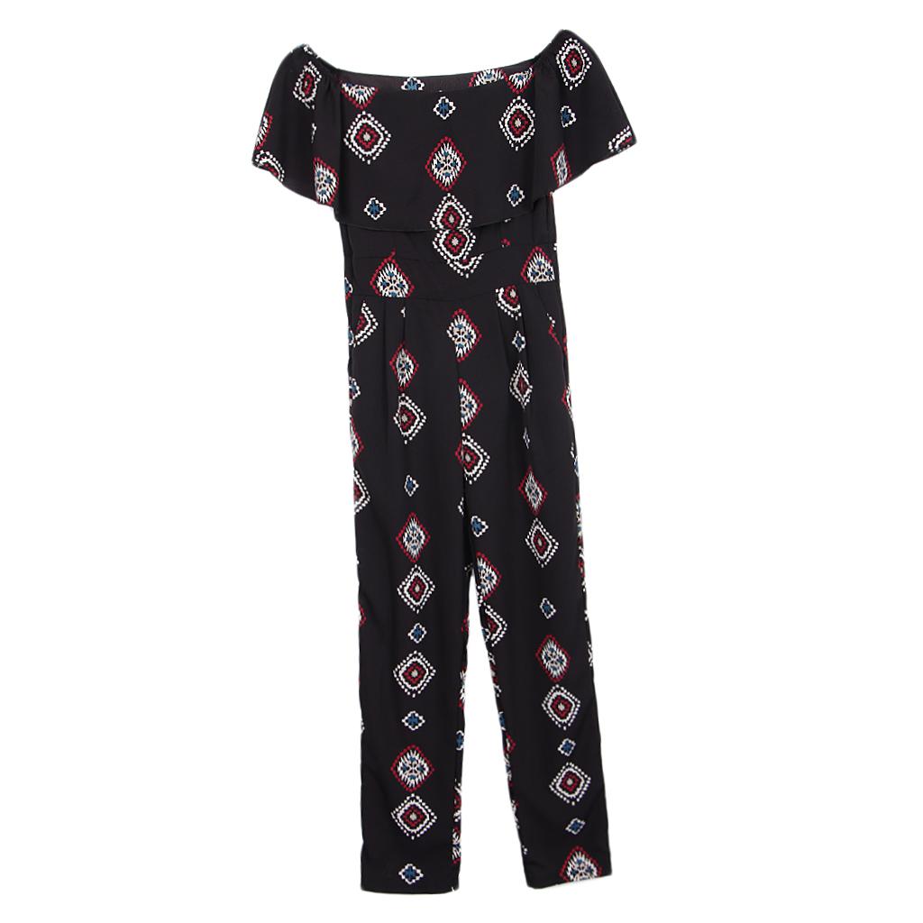 Vintage geometric printed off the shoulder jumpsuit, chic and cool for summer casual wear, especially designed for women