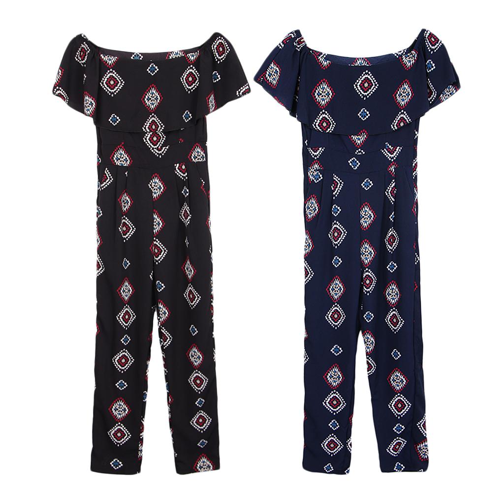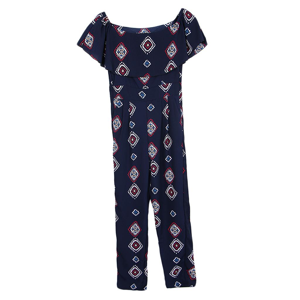 Vintage geometric printed off the shoulder jumpsuit, chic and cool for summer casual wear, especially designed for women