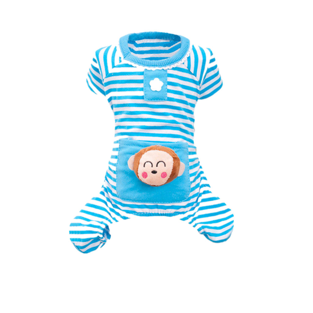 Maxbell Maxbell Pet Dog Cat Puppy Soft Striped Pajamas Jumpsuit Coat Clothes Apparel Blue L