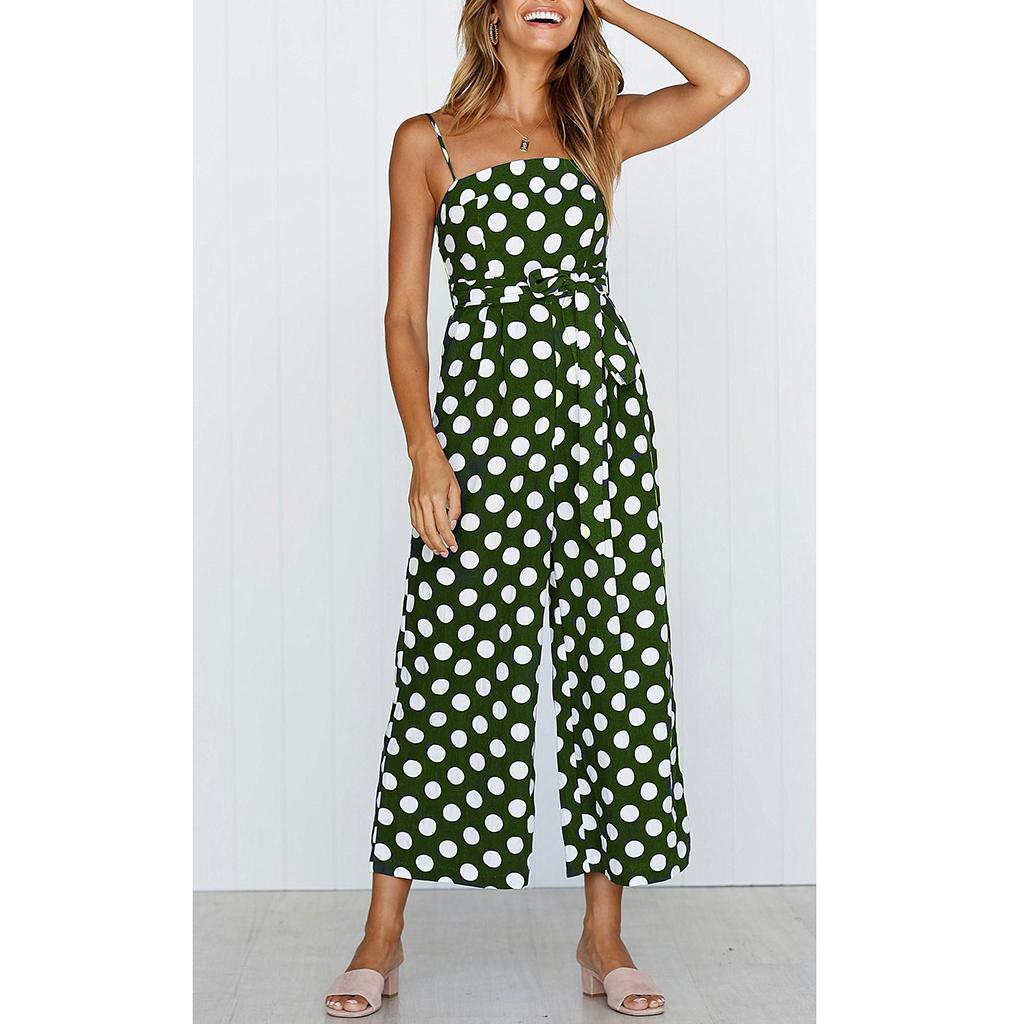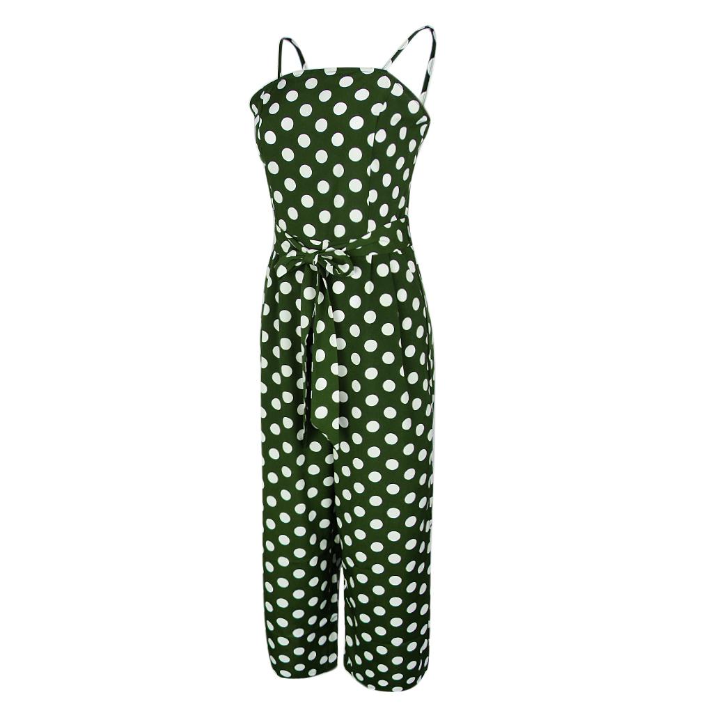 Fashion women polka dots strappy jumpsuit romper pants