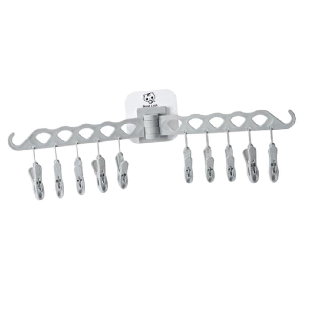 Maxbell 10 Clips Folding Drying Rack Laundry Hanger For Socks Underwear Bra Grey