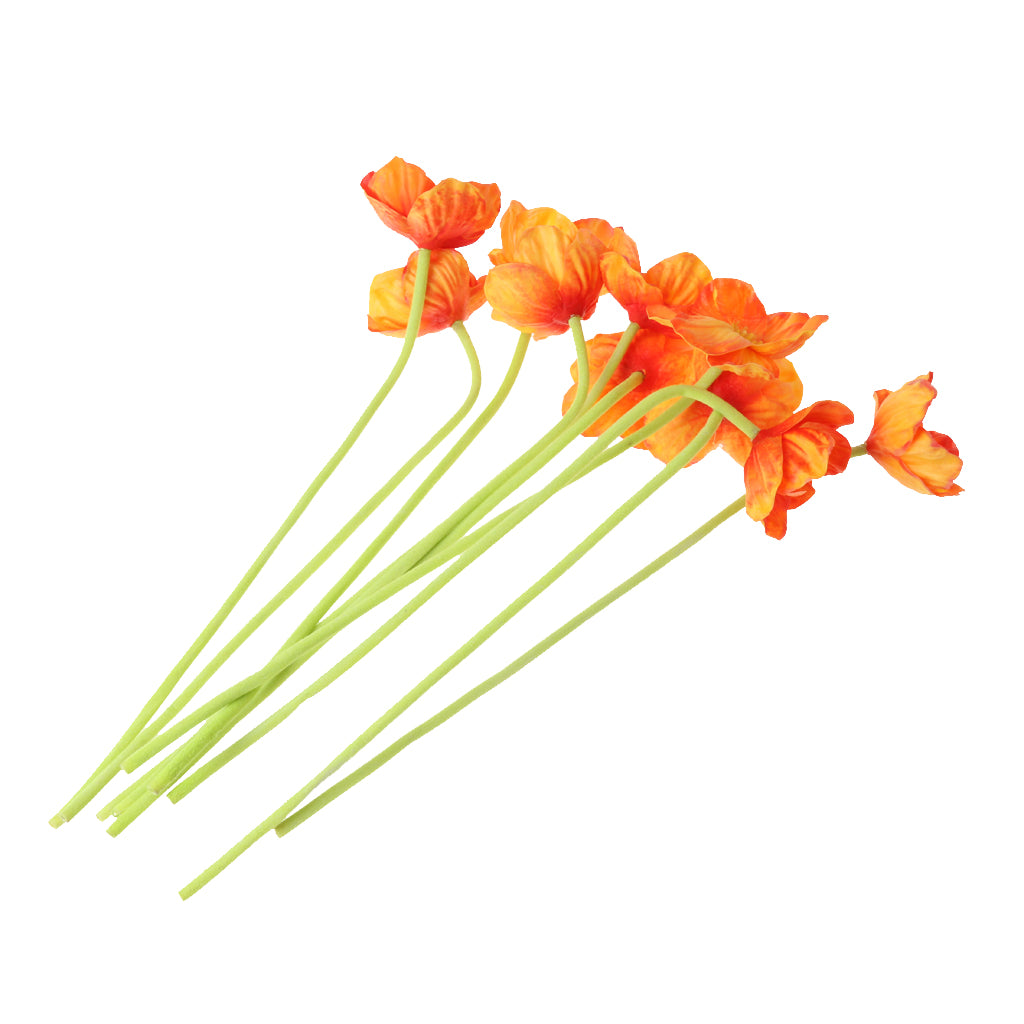 Max 10 Pieces PU Lifelike Artificial Poppy Flower Branches for Home Decor Orange