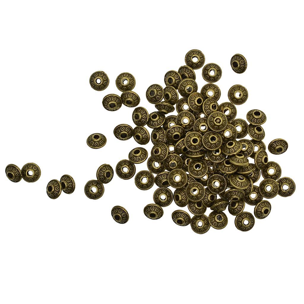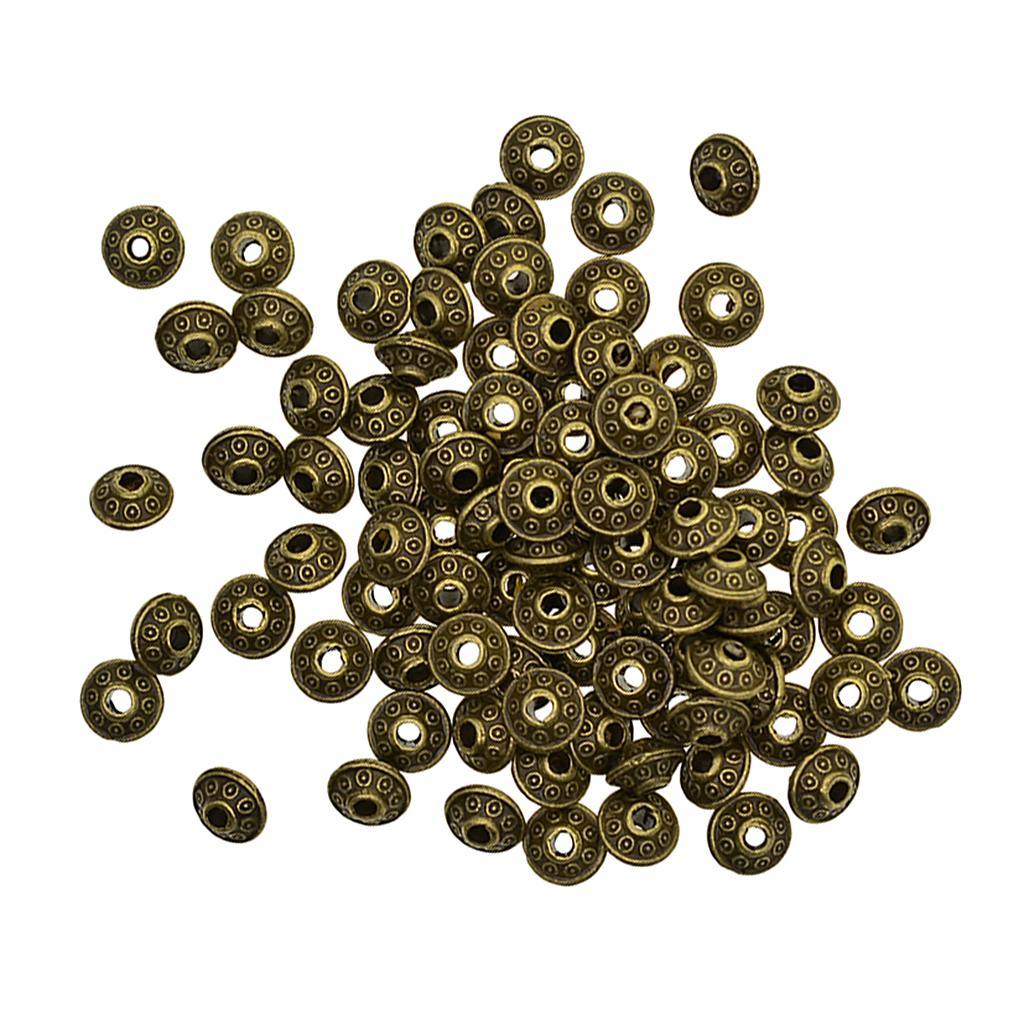 Maxbell 100 Pcs Antique Bronze Bicone Pattern Alloy Spacer Beads Loose Beads DIY Bracelet Findings