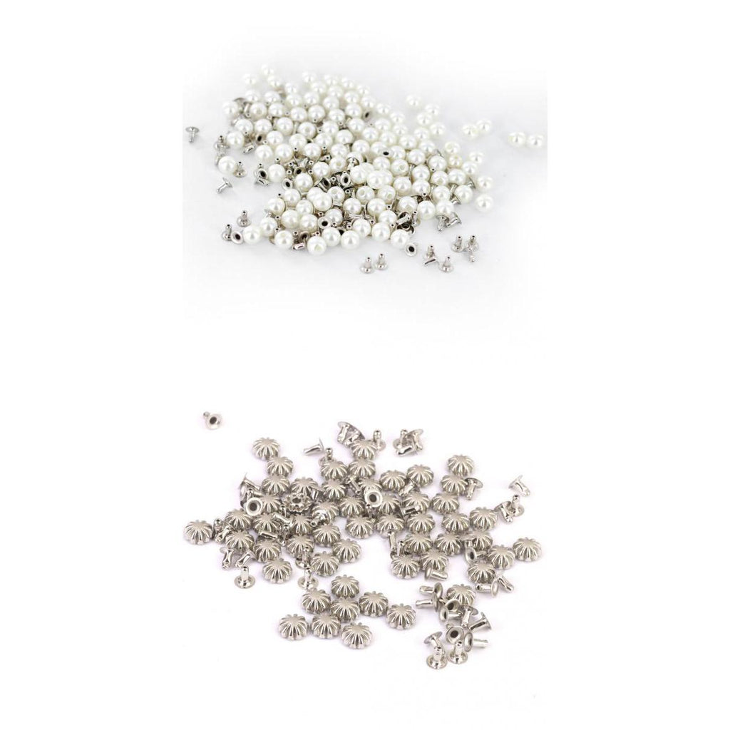 Maxbell 100 Pearls Rivets Studs for Dress Clothes Bracelet Bag Crafts+ 50 Pumpkin Rivets