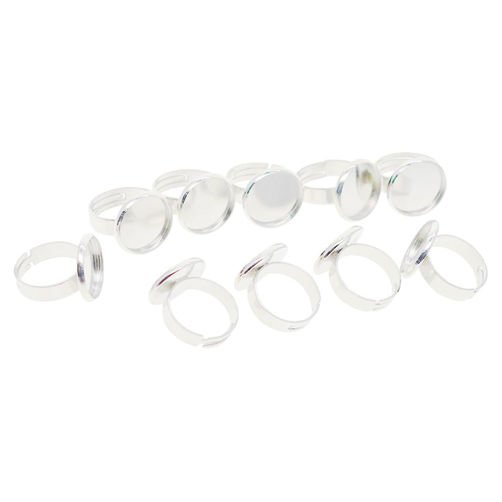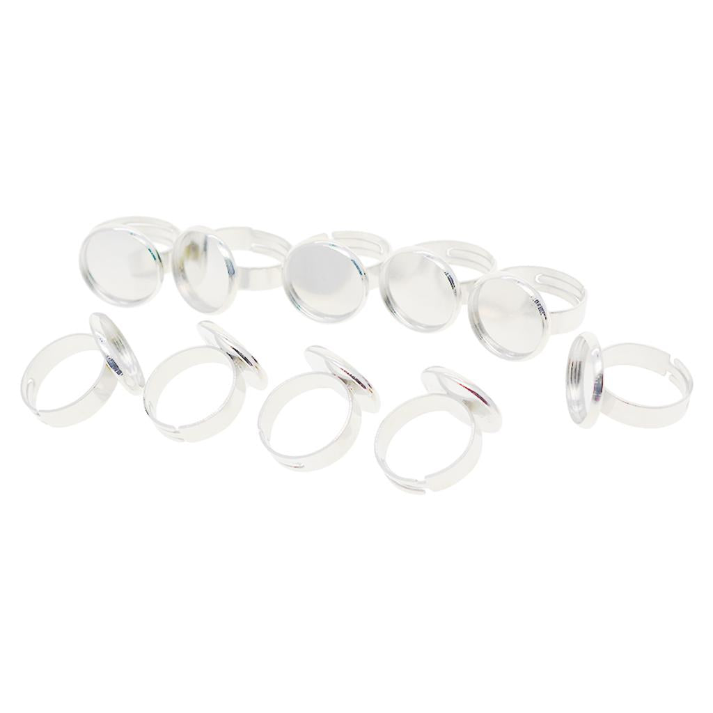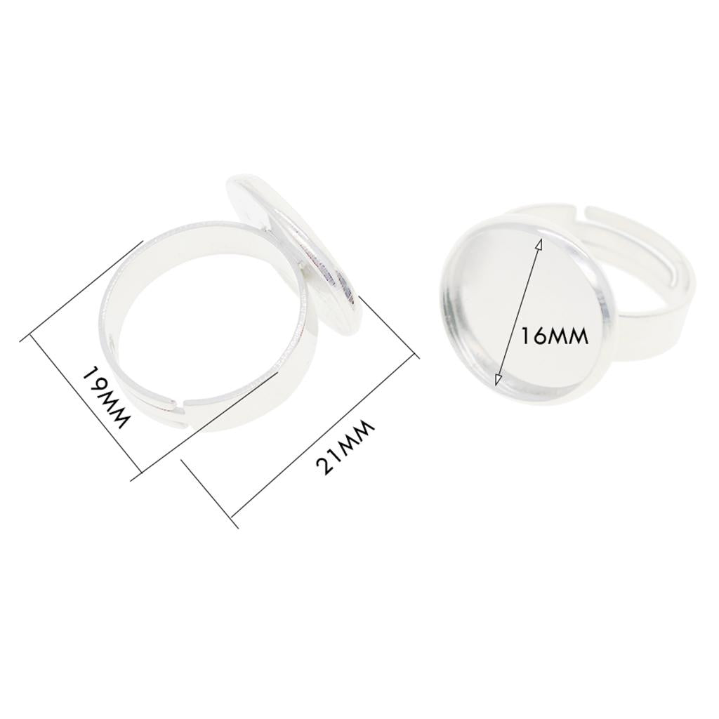 Max Maxb 10pcs 16mm Blank Round Bezel Tray Cabochon Adjustable Brass Ring Silver