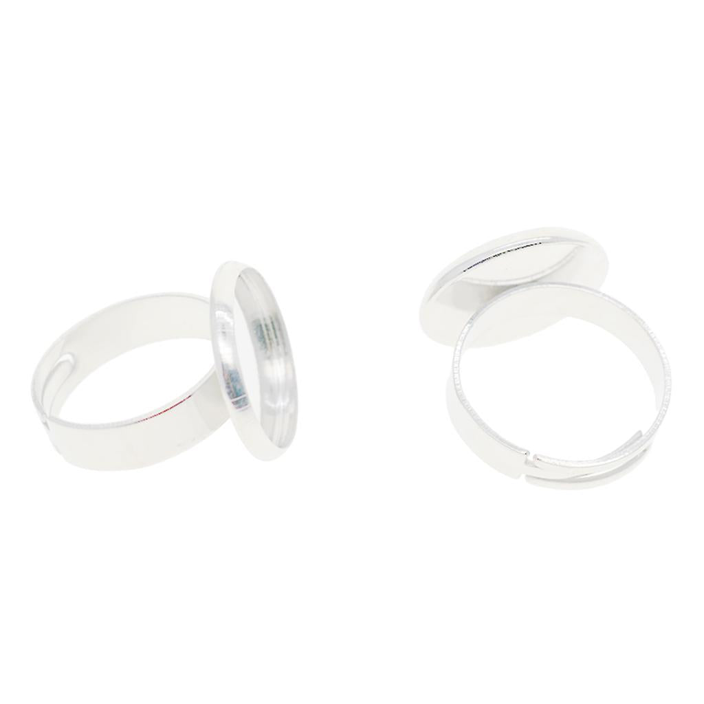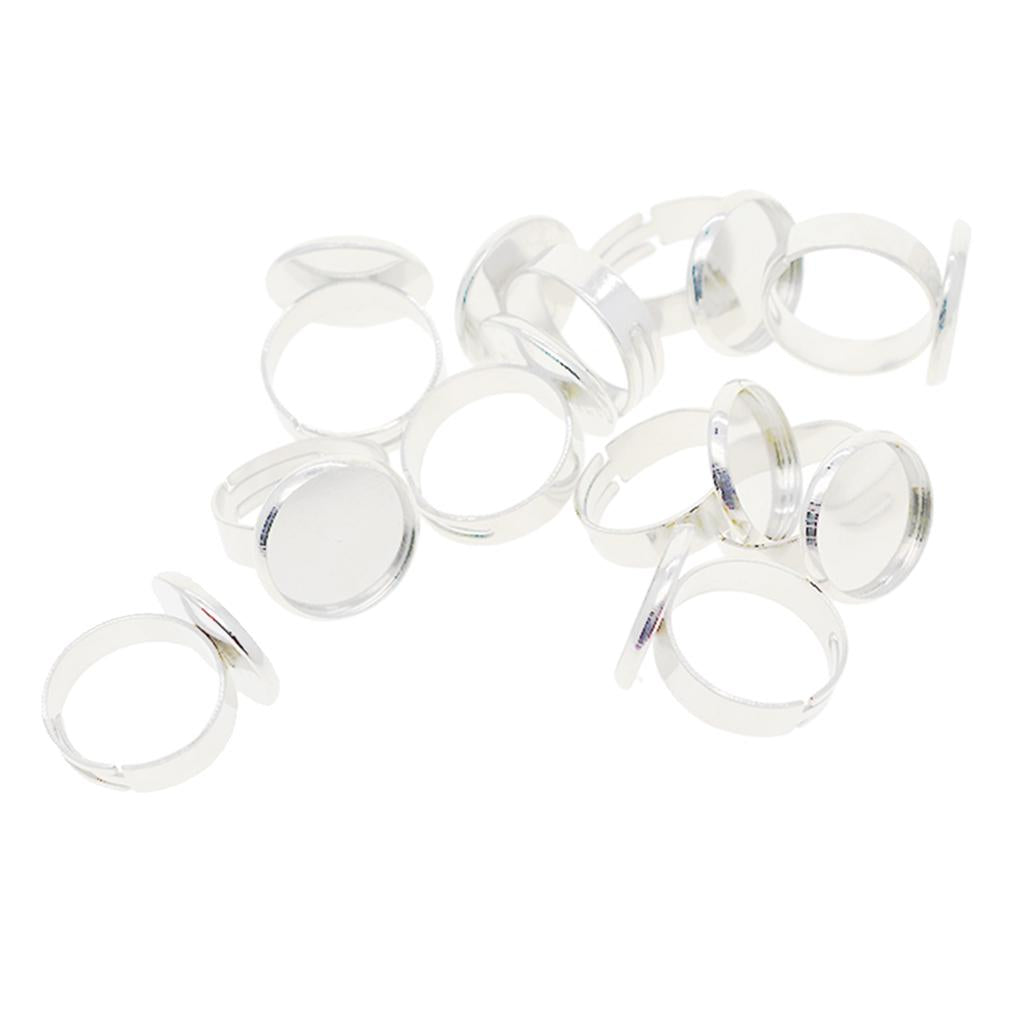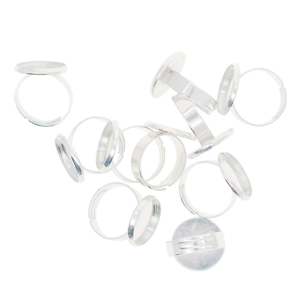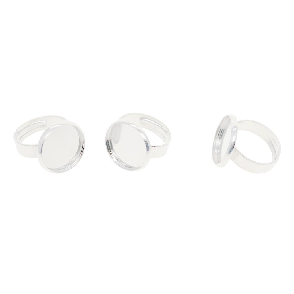Max Maxb 10pcs 16mm Blank Round Bezel Tray Cabochon Adjustable Brass Ring Silver