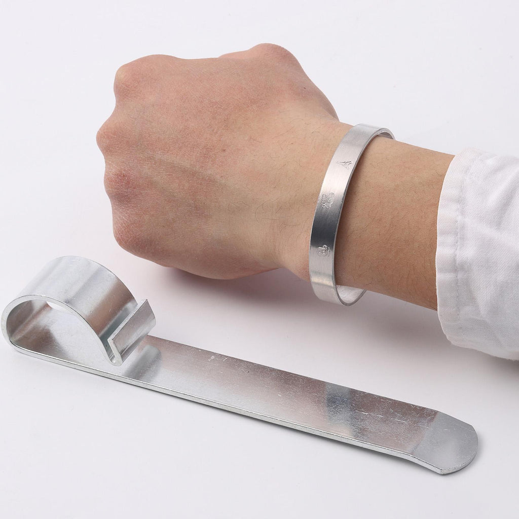How to use: Place on the curved surface of the cutter(not included), bend the bracelet blank 1/2 way, repeat on the other side of the bracelet, you can easily adjust the bend as needed.