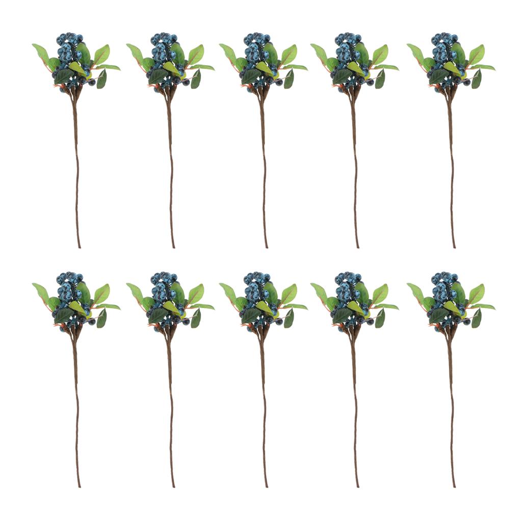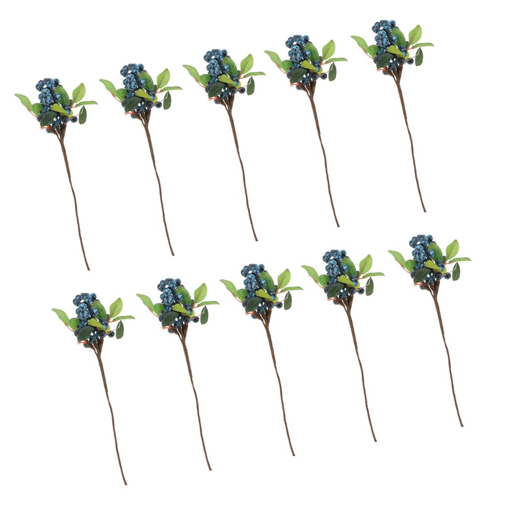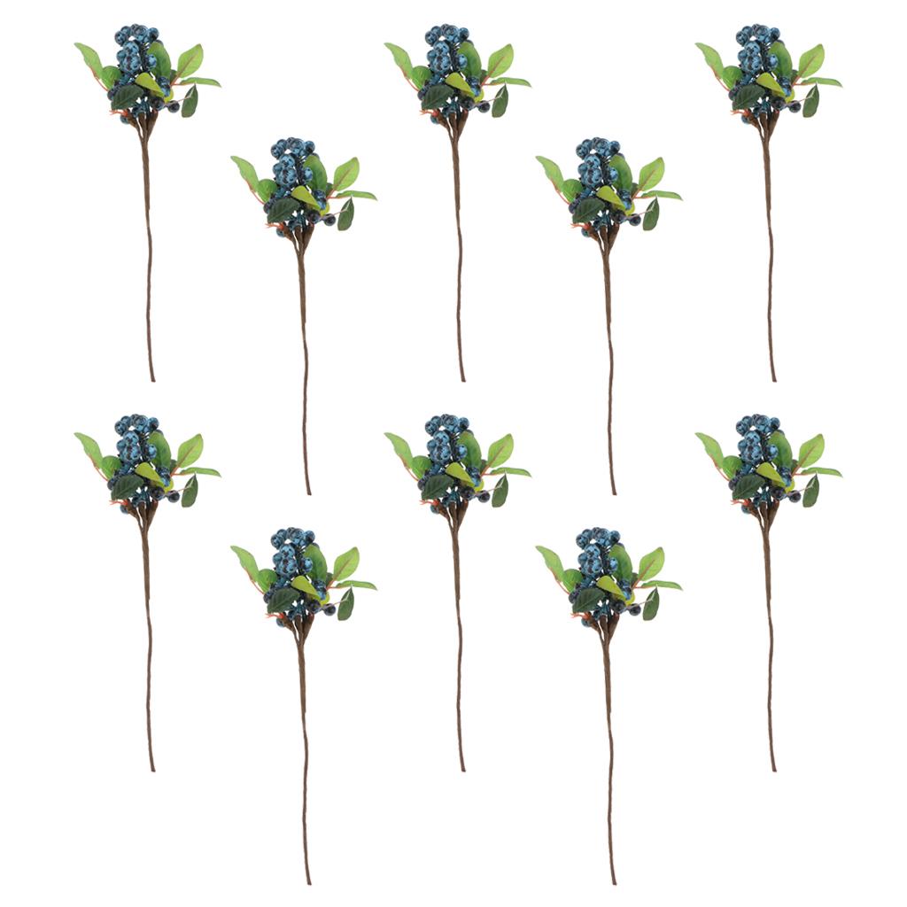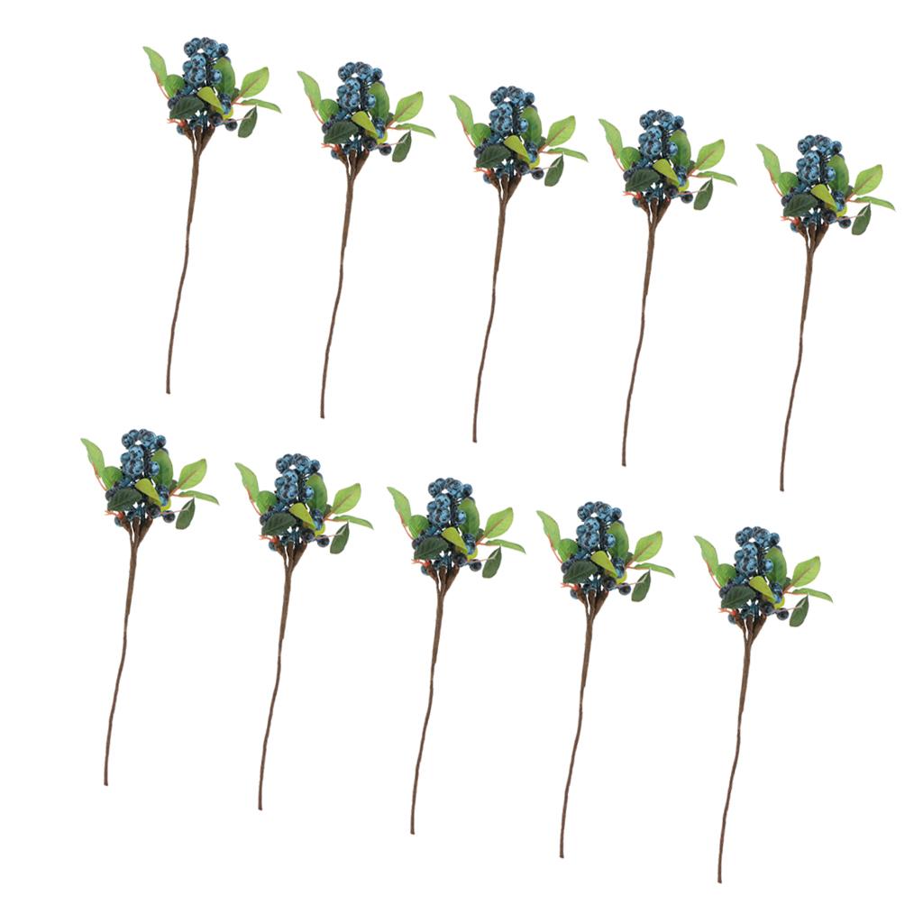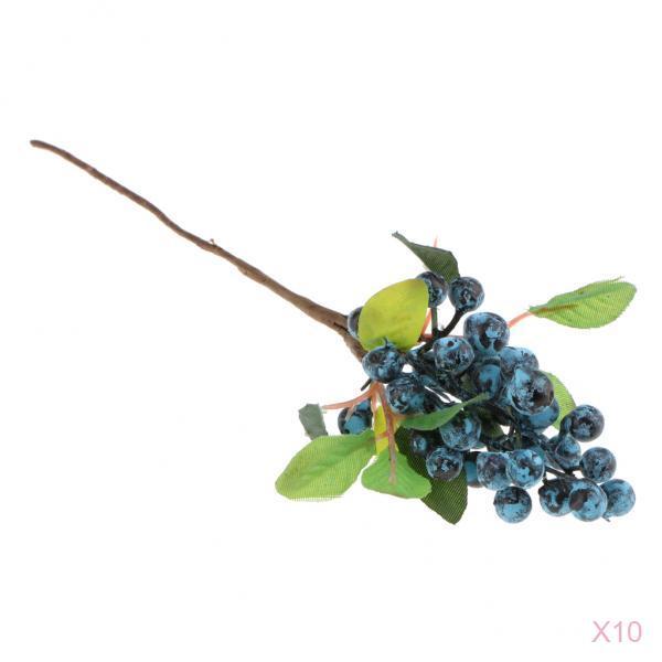 Maxbell 10Pcs Plastic Artificial Plant Fruit Berries Branches Home Cafe Decor Blue
