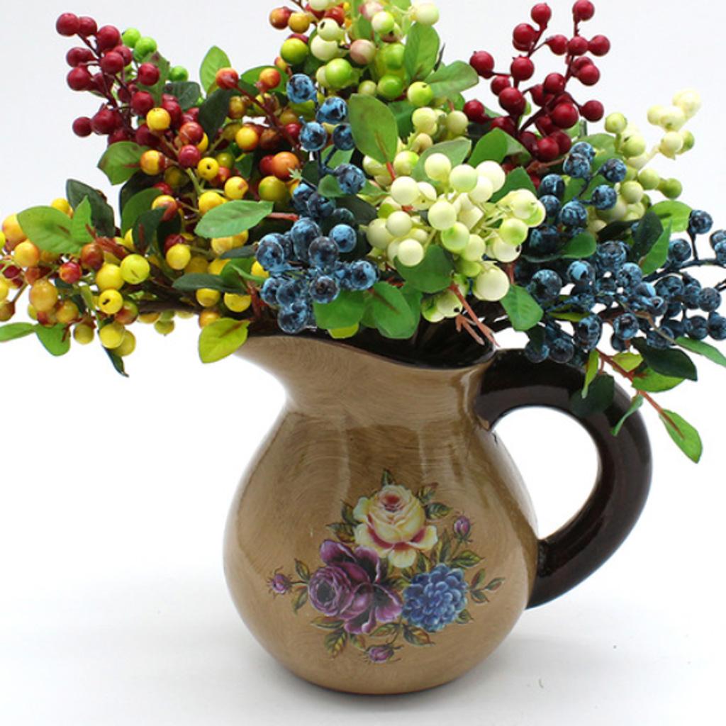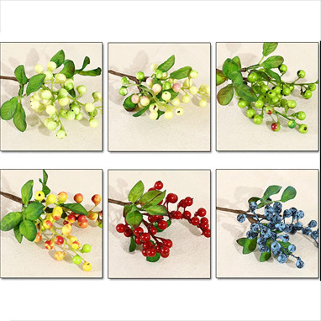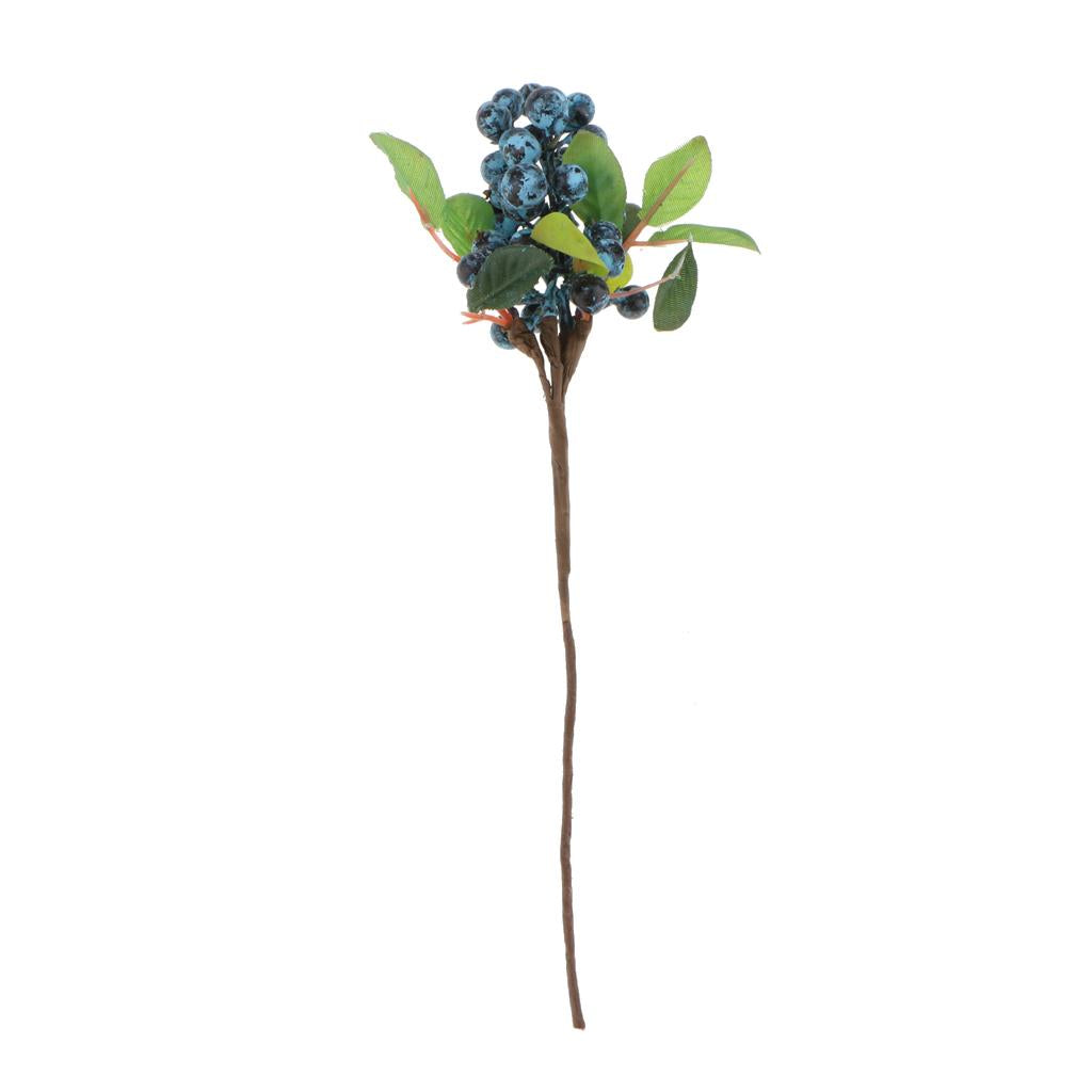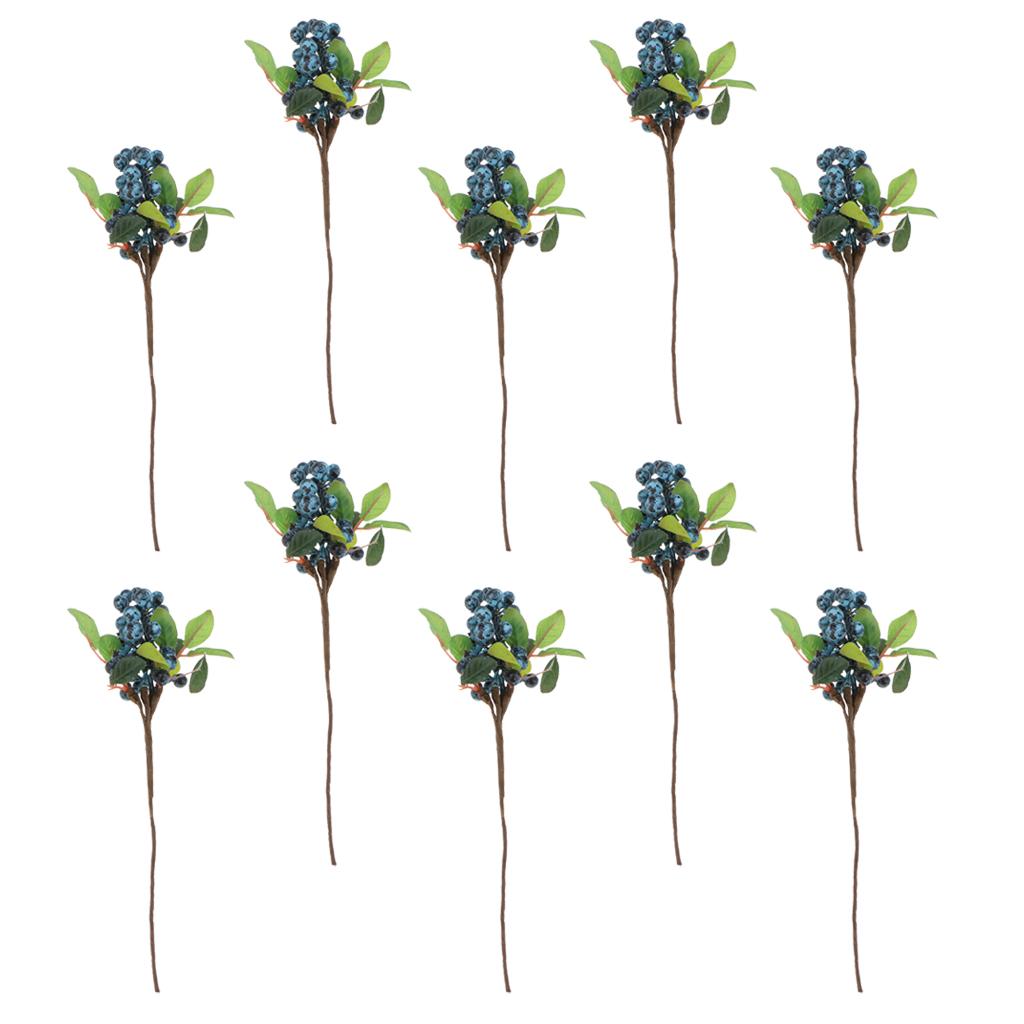Maxbell 10Pcs Plastic Artificial Plant Fruit Berries Branches Home Cafe Decor Blue