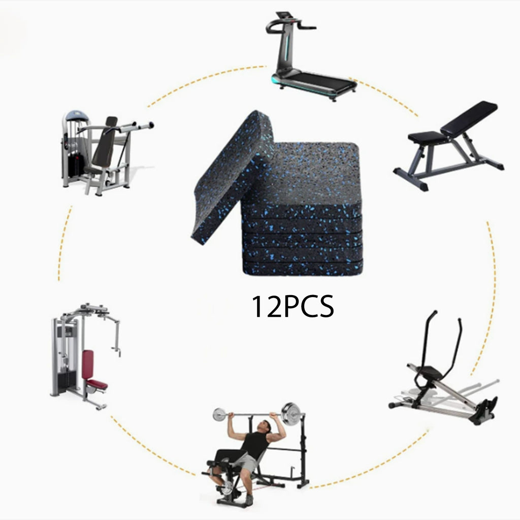 12 Pieces Treadmill Mat Thickened Anti Vibration Mat for Bike Weight Benches black and blue