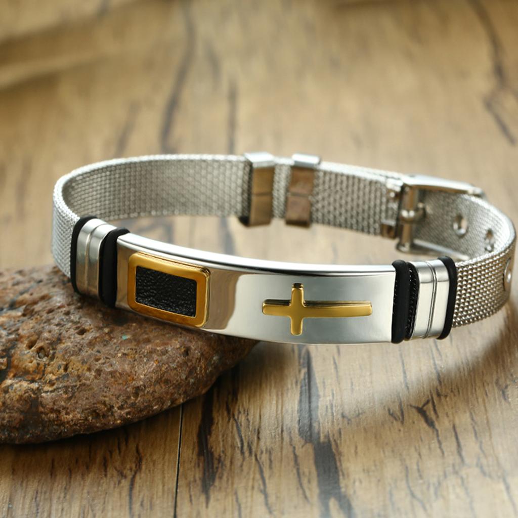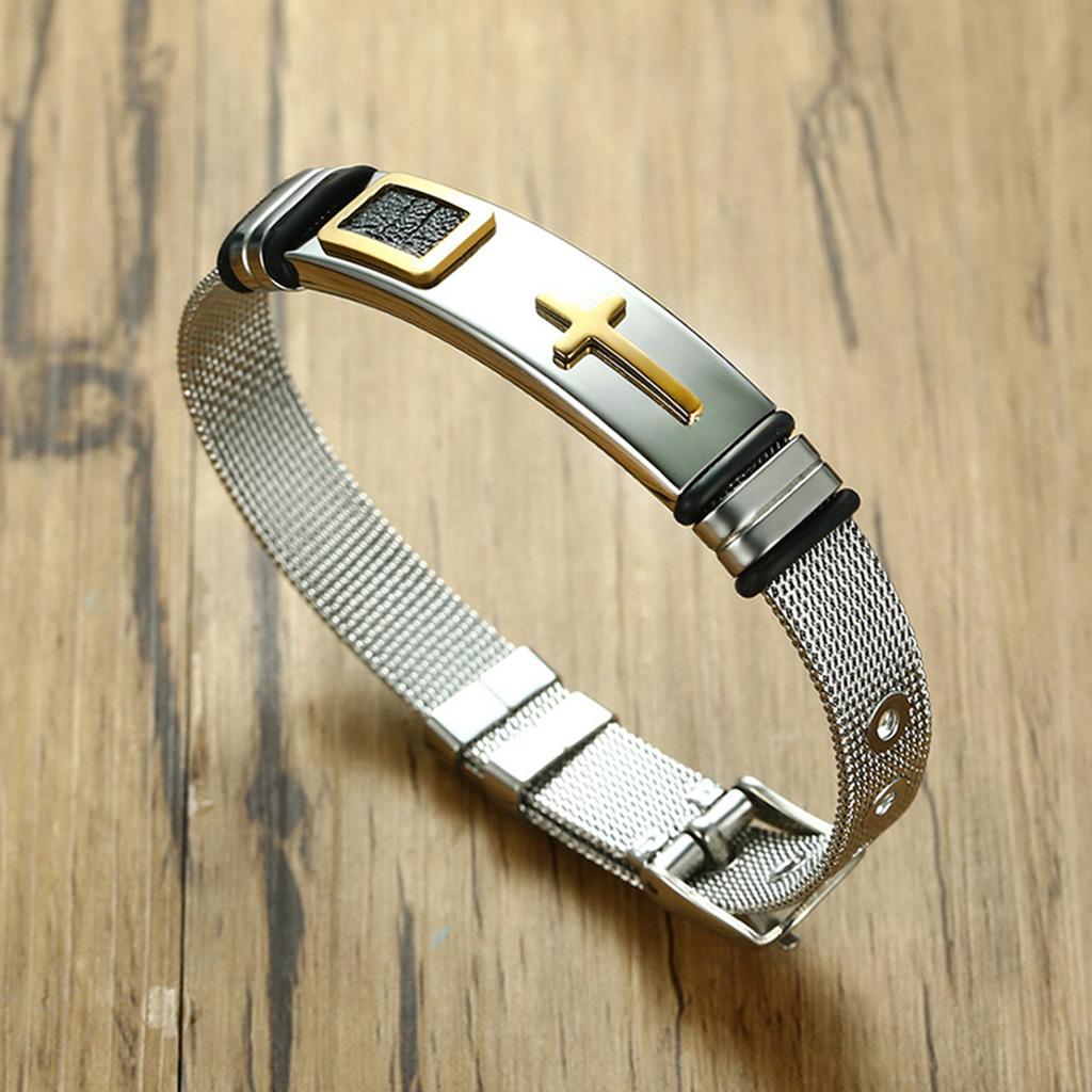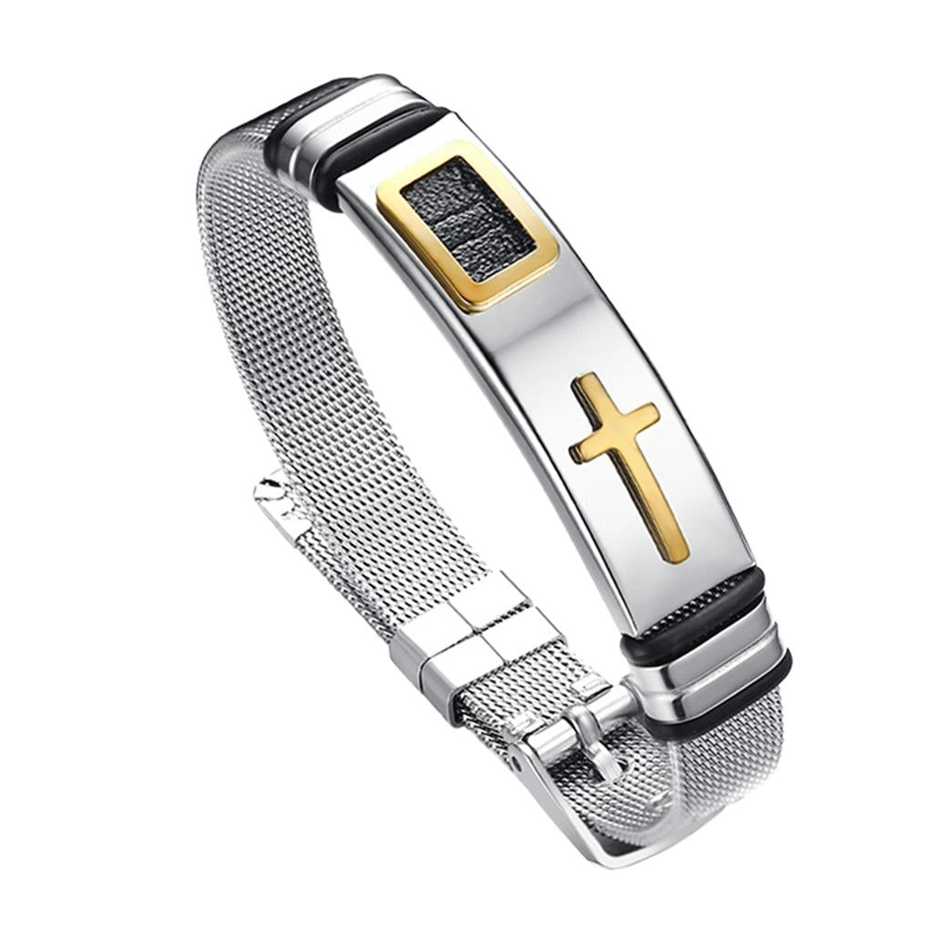 Maxbell 12mm Width Fashion Stainless Steel Adjustable Men Cross Bracelet Gold