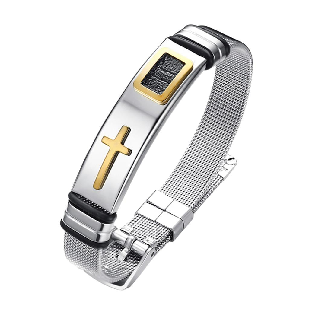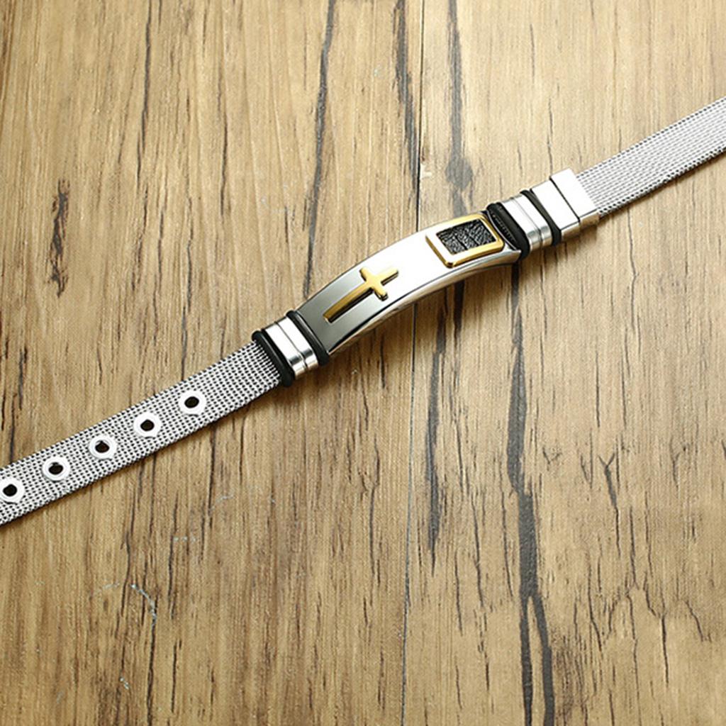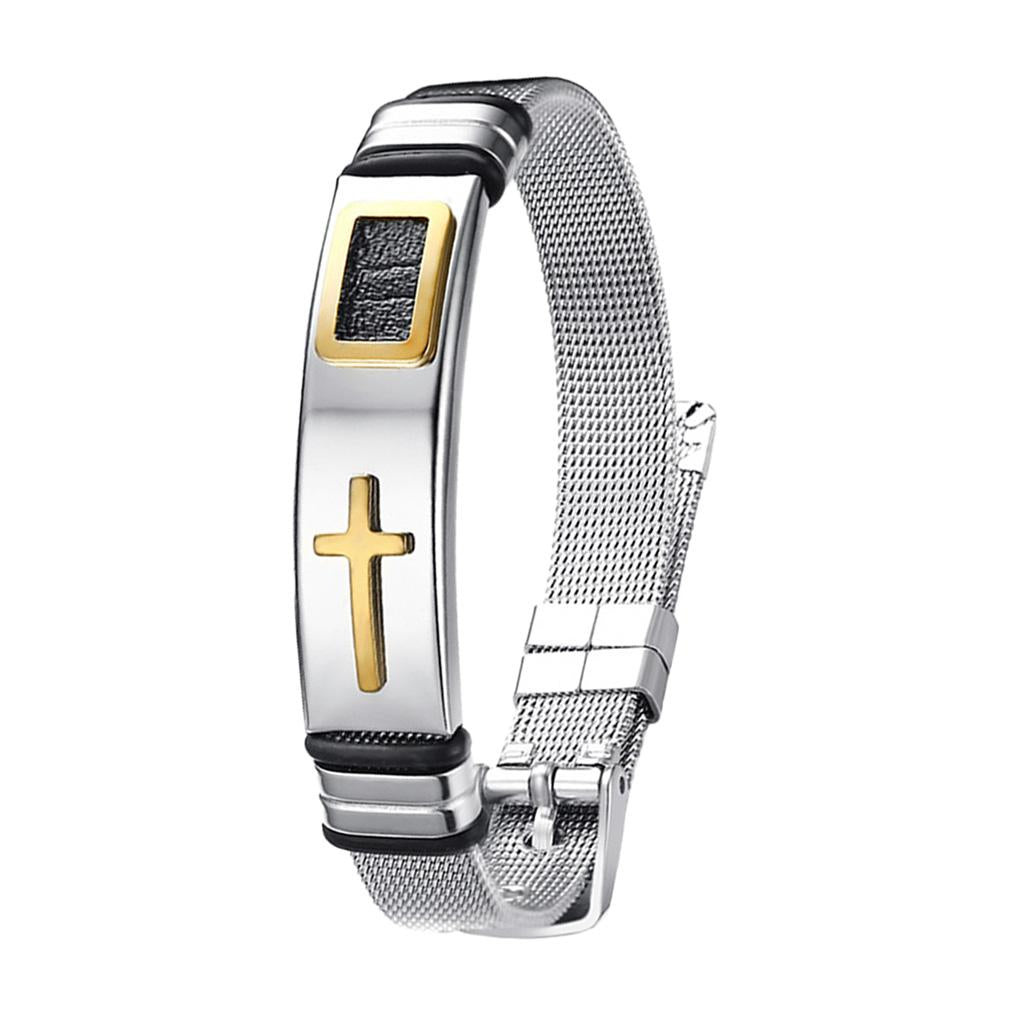 Maxbell 12mm Width Fashion Stainless Steel Adjustable Men Cross Bracelet Gold