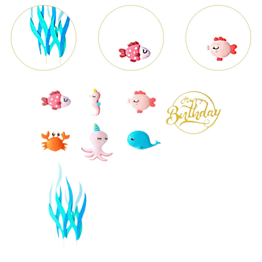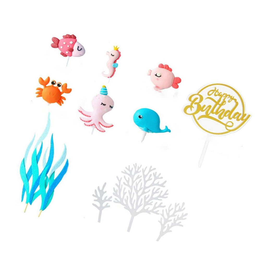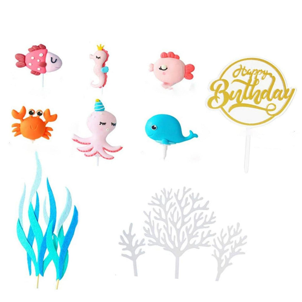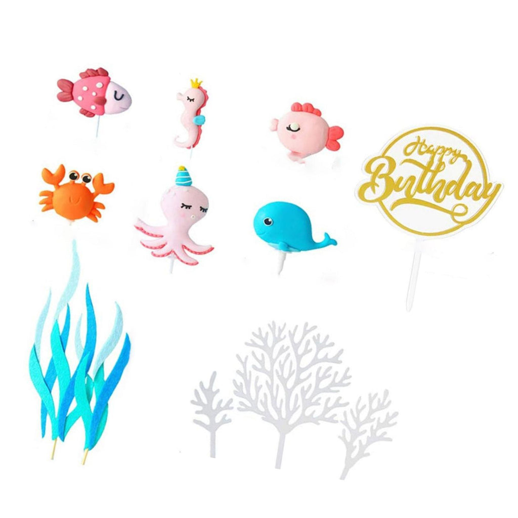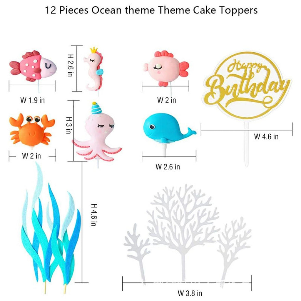 - 【Package】: You will receive 12pcs ocean cake topper, including 1pc whale, 1pc seahorse, 1pc crab, 1pc octopus, 2pcs fish, 5pcs seaweed, 1pc birthday cake topper, our ocean cake toppers will meet your cake decoration needs