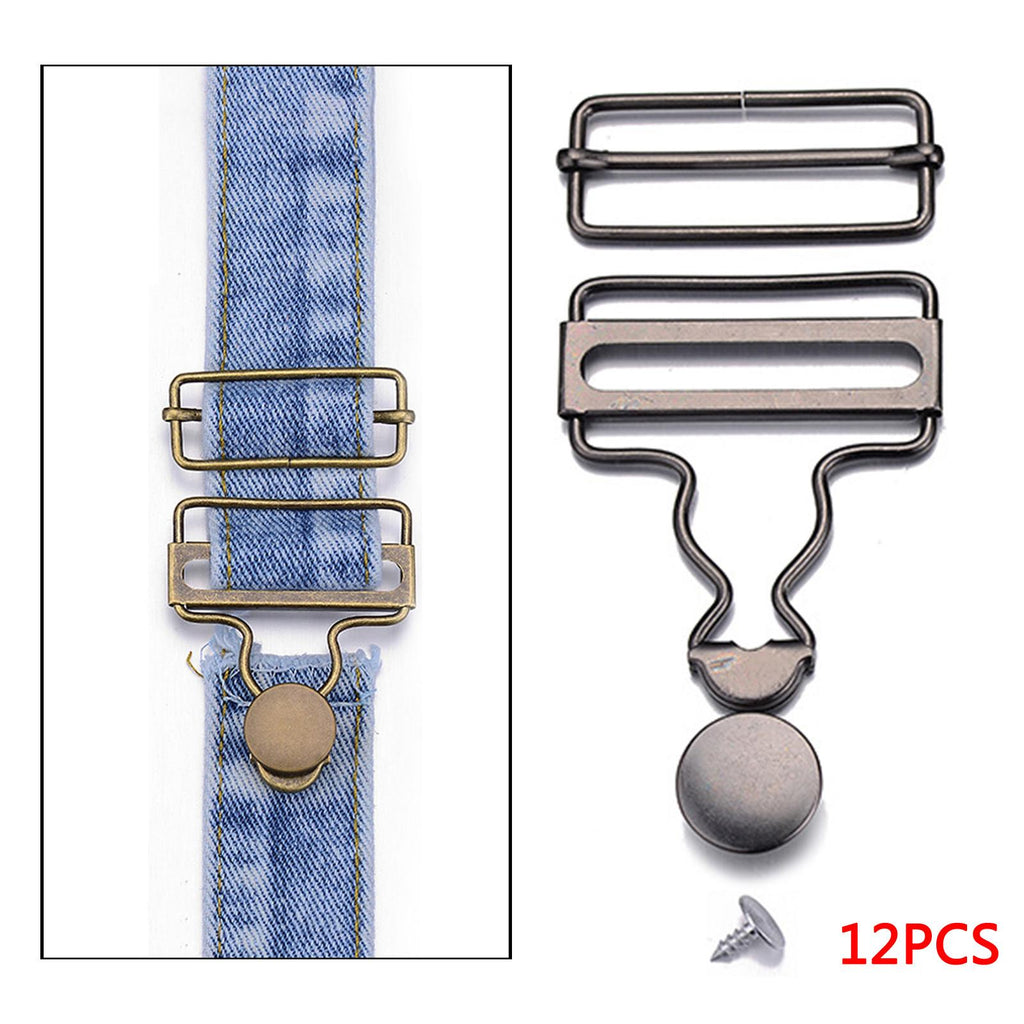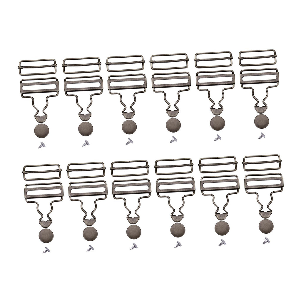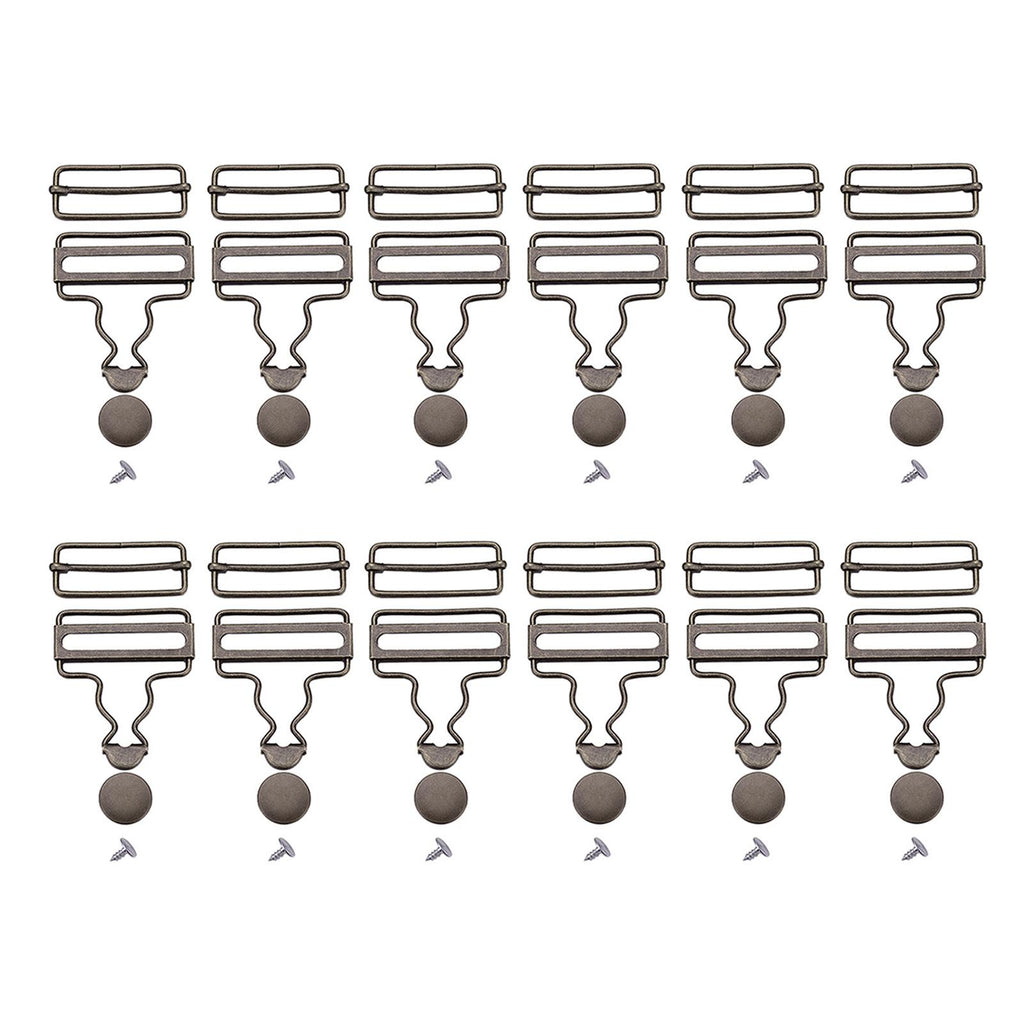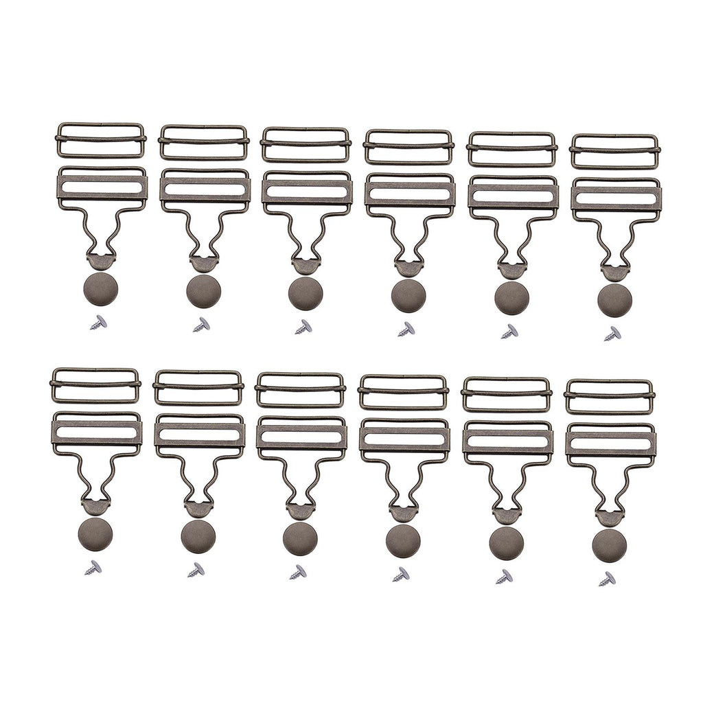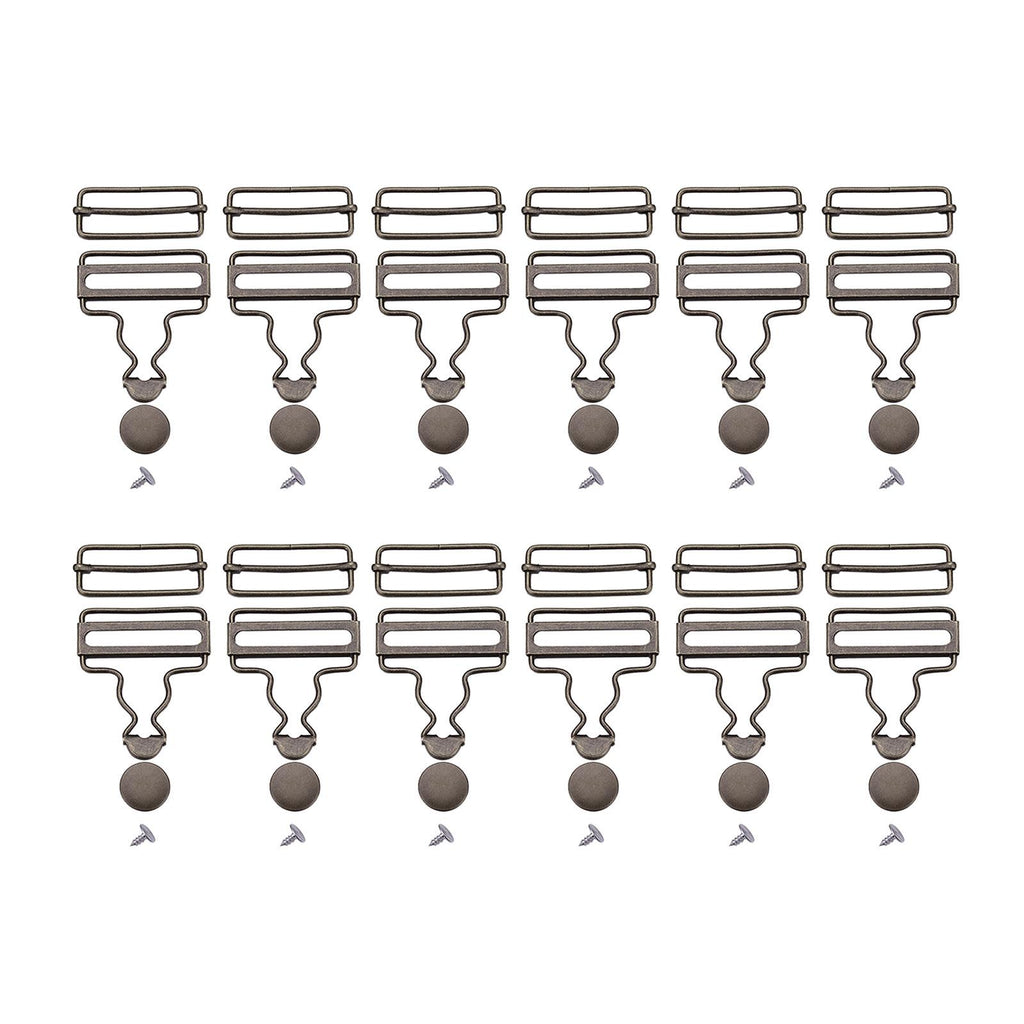 Maxbell 12Set Metal Fasteners Clip Brace Buckles Suspenders Buckles with Slider 40mm
