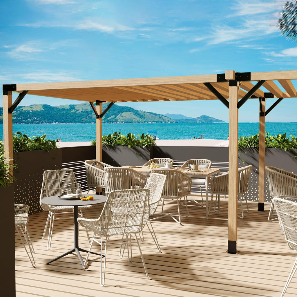 【Application】: The 45° angle braces are a universal bracket kit used in various settings such as patios, lawns, balconies, screen rooms, courtyards, and commercial places.