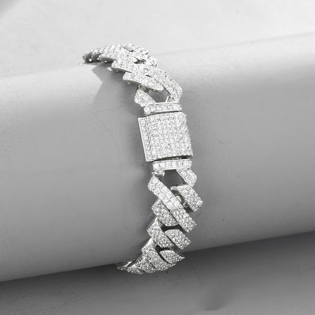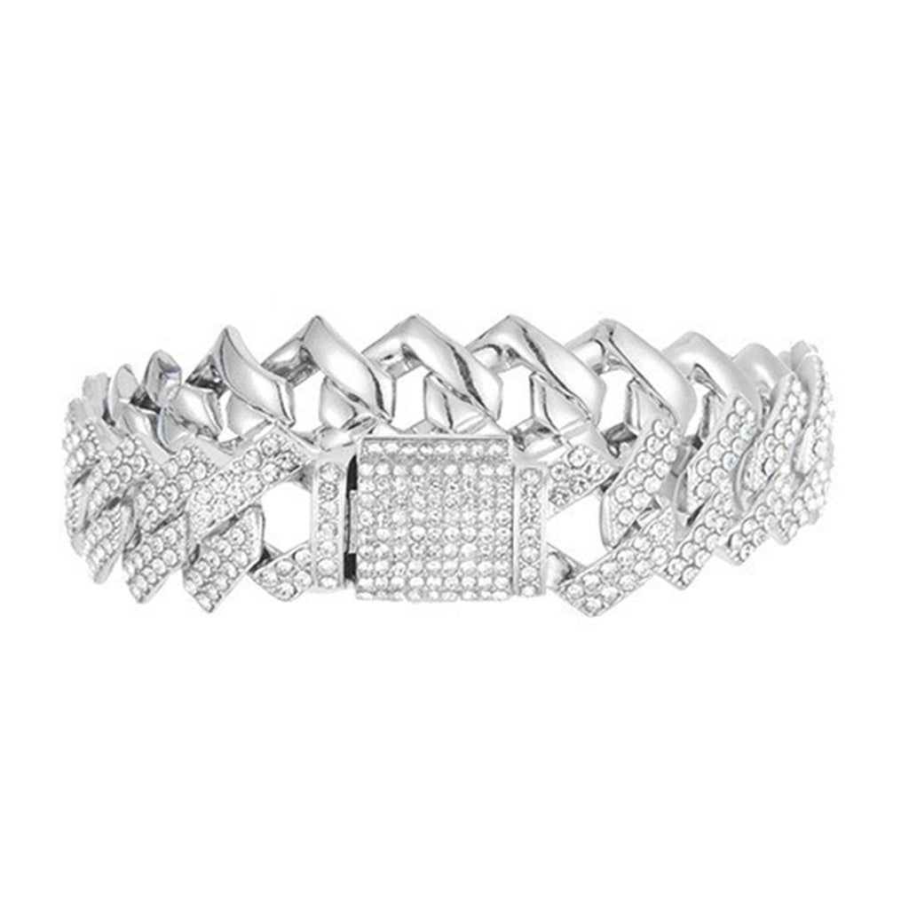 Maxbell 15mm Cuban Link Chain Bracelet Bling for Anniversaries Mens Women Parties 7inch Argent