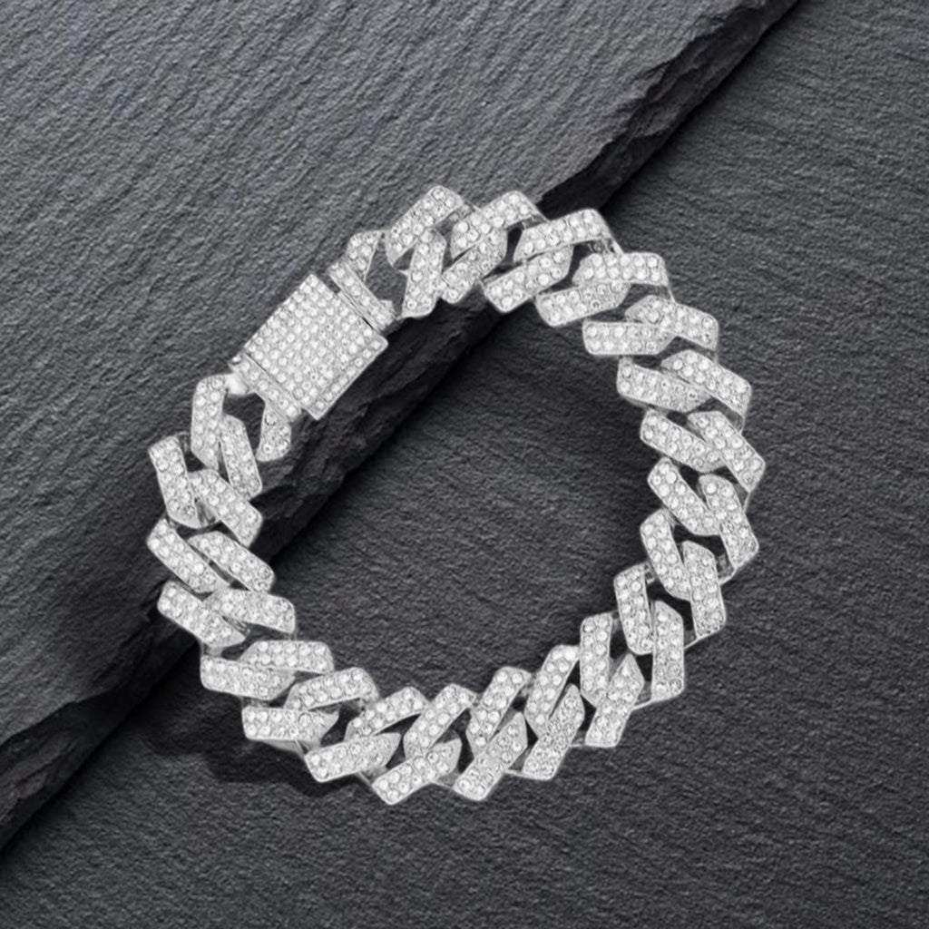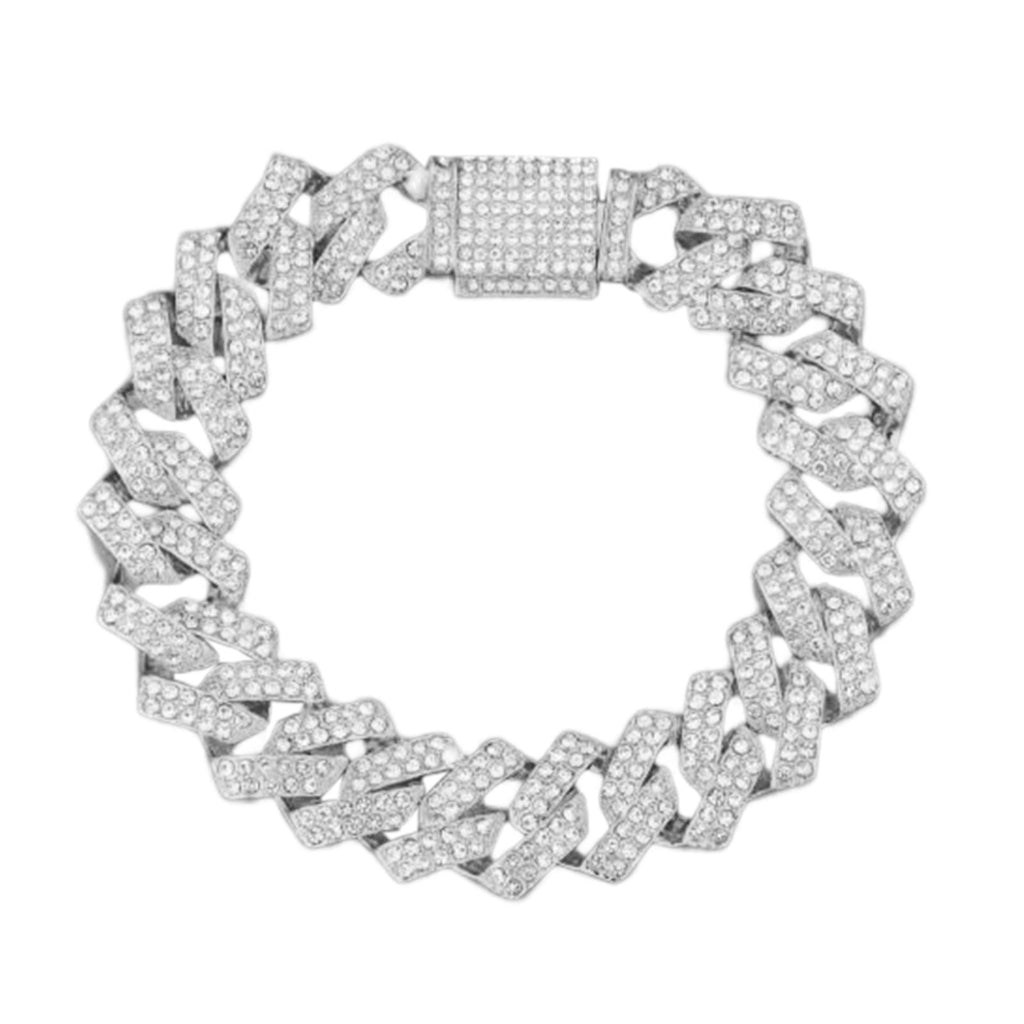 Maxbell 15mm Cuban Link Chain Bracelet Bling for Anniversaries Mens Women Parties 8inch Argent