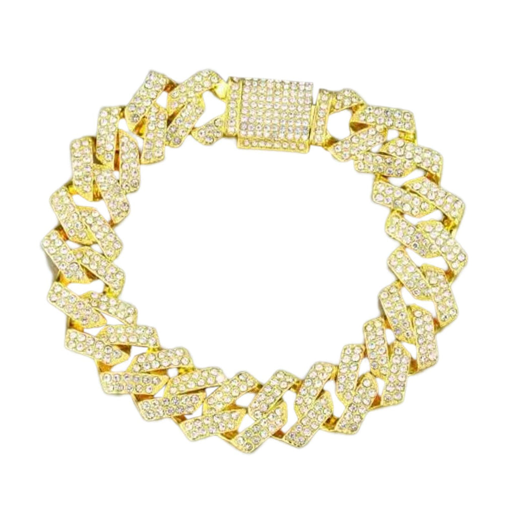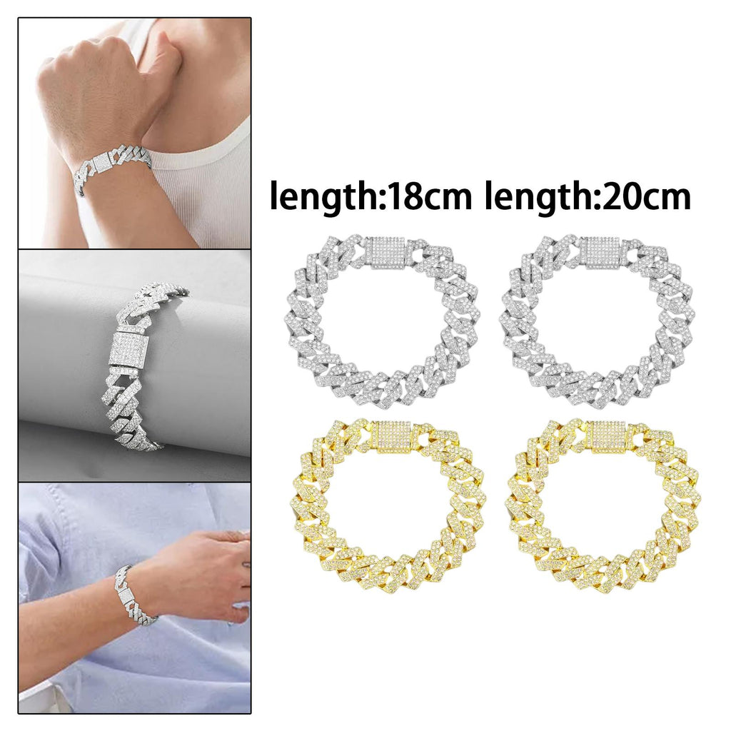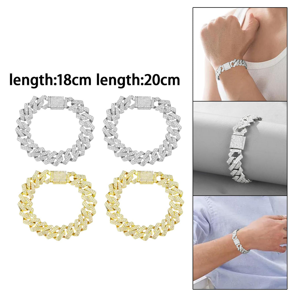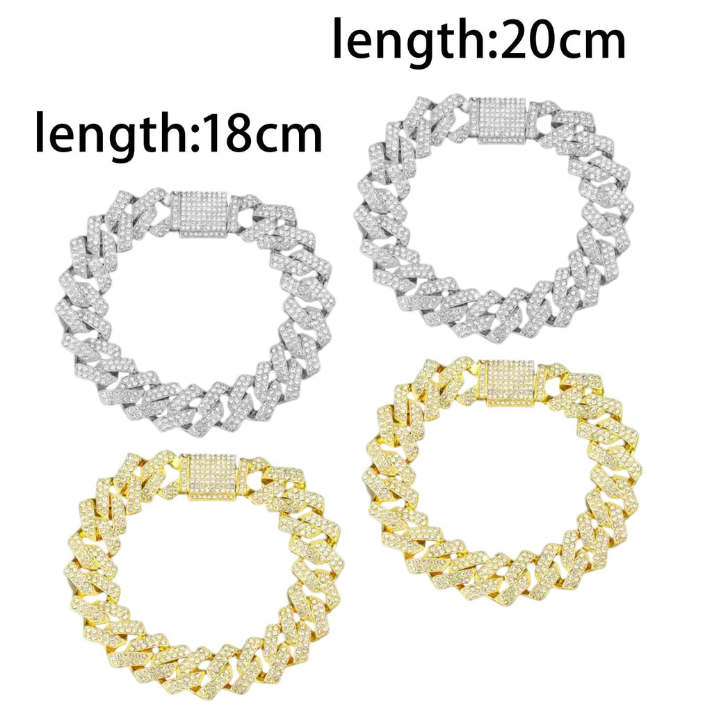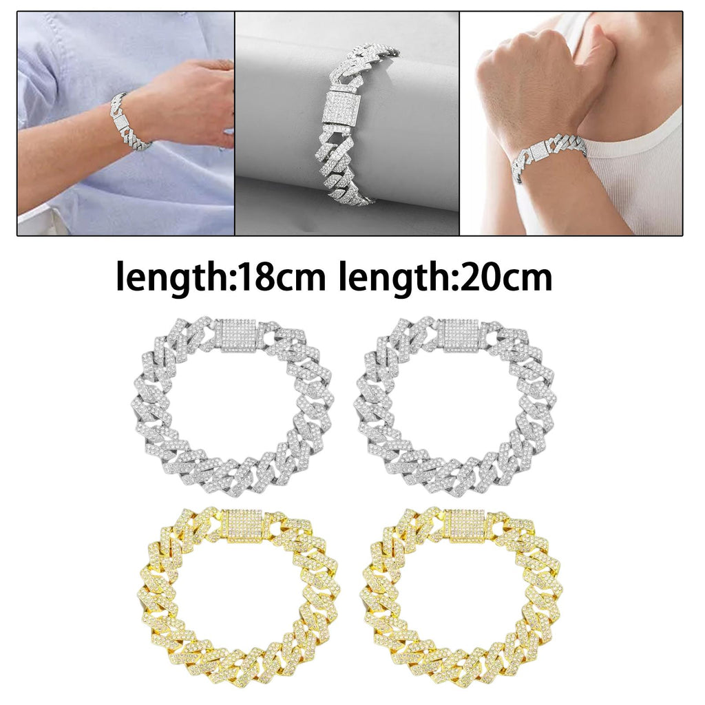 Material: Chunky Cuban Link Chain Bracelet is made of high quality Alloy and rhinestones, durable, all the rhinestones are hand inlaid by craftsmen