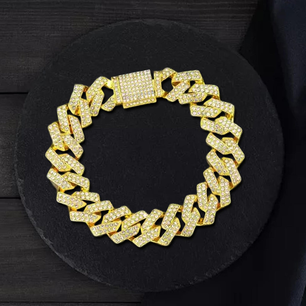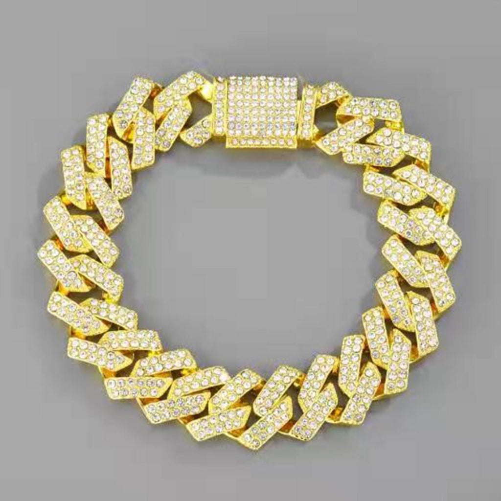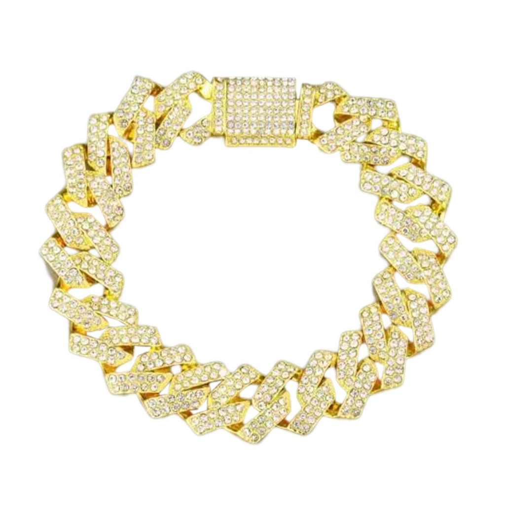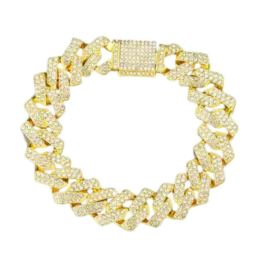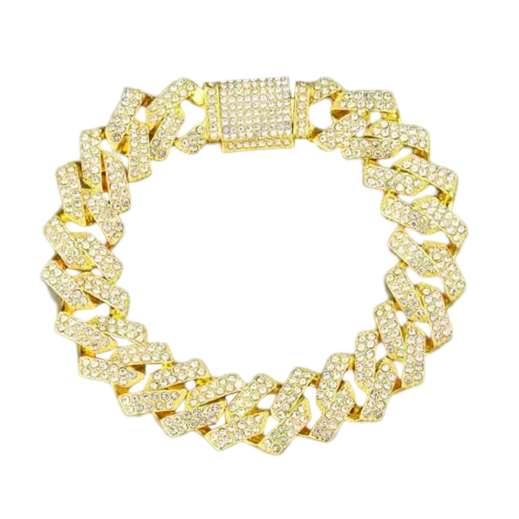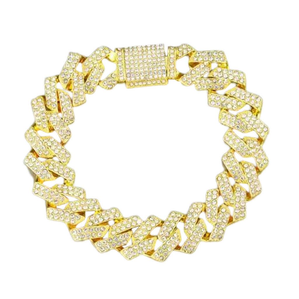Material: Chunky Cuban Link Chain Bracelet is made of high quality Alloy and rhinestones, durable, all the rhinestones are hand inlaid by craftsmen