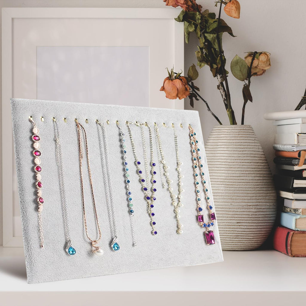 Maxbell 17 Hooks Necklace Display Stand Display Boards for Bracelets Anklets Selling grey velvet