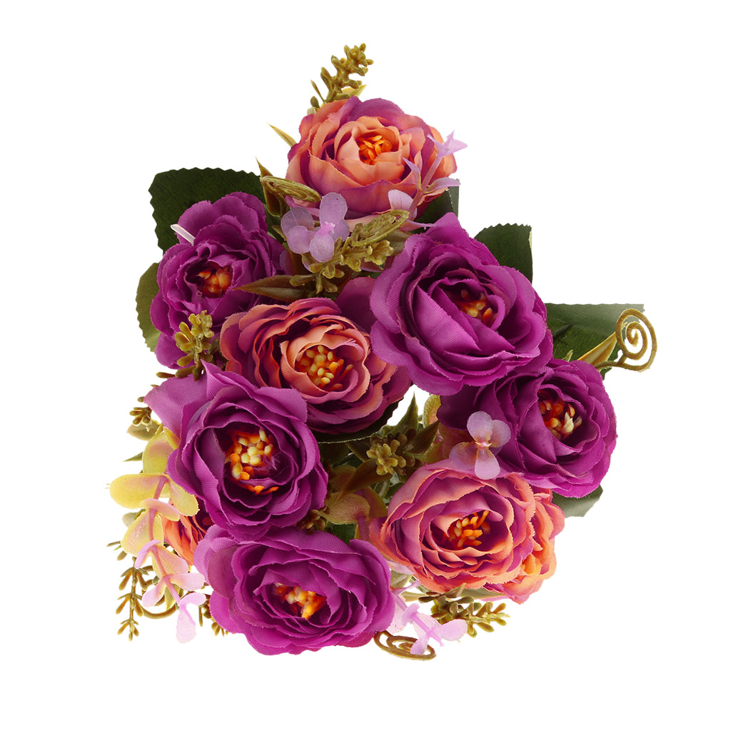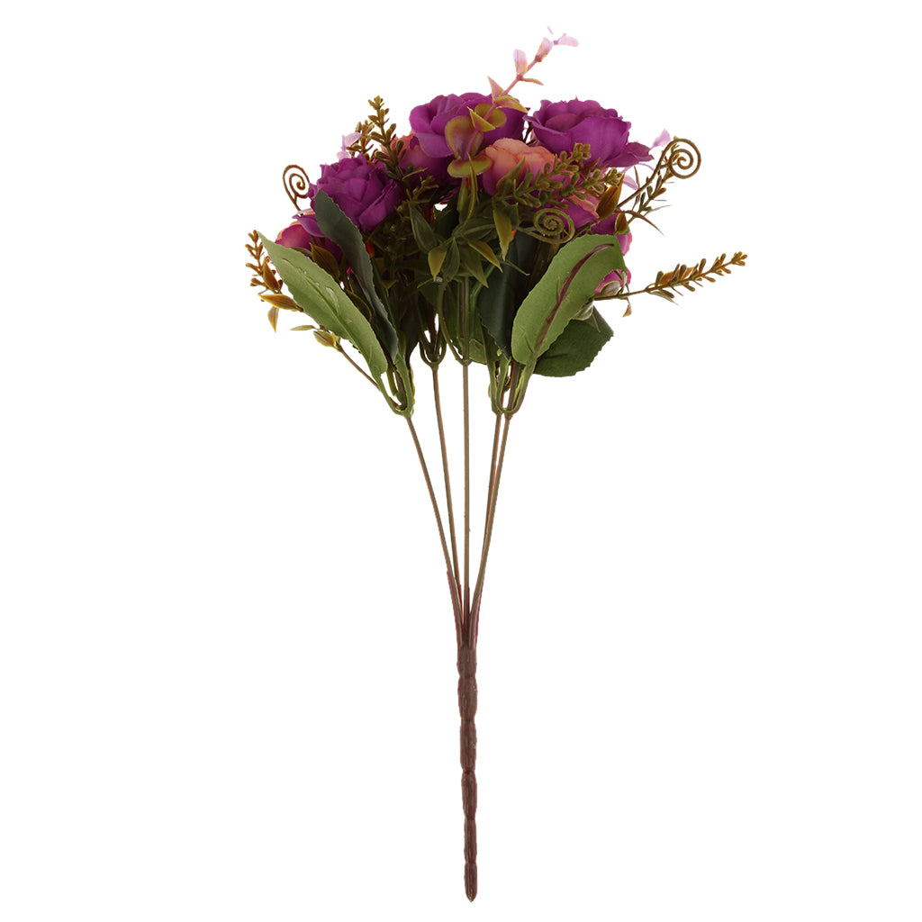 Maxbell Maxbell 2 Bunches Artificial Rose 5-Branch Fake Flower Plant Home Decor-Purplish Red