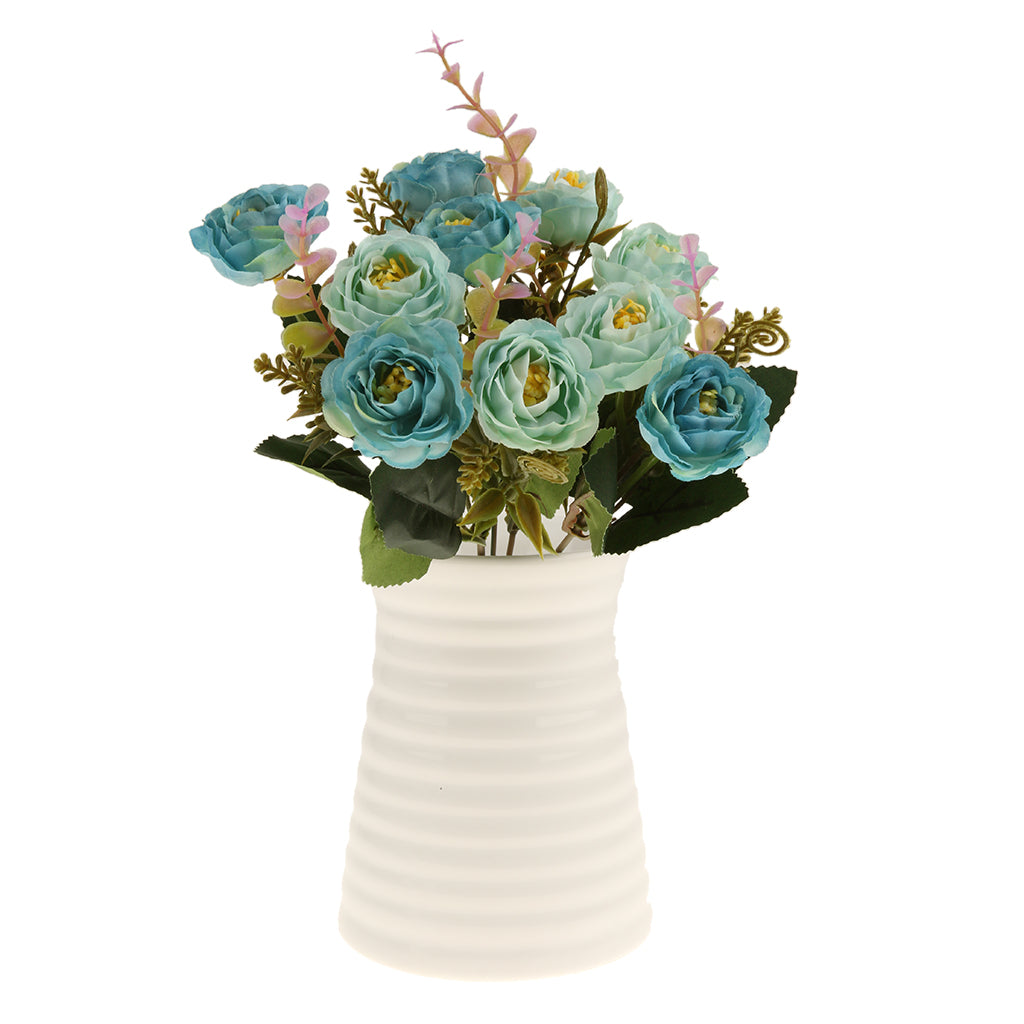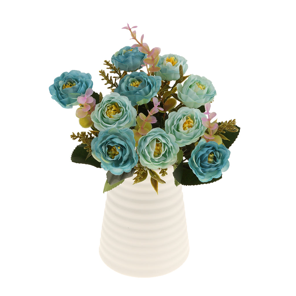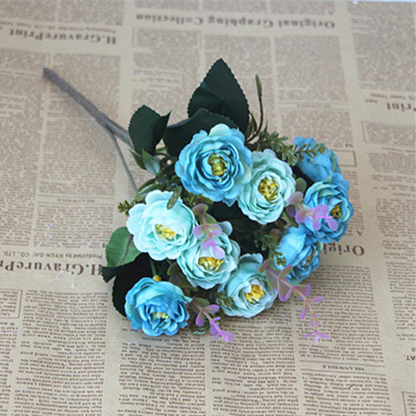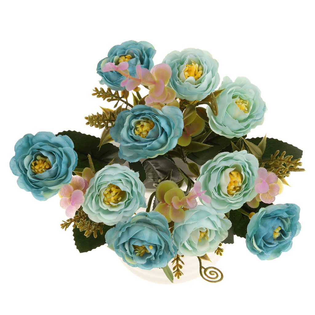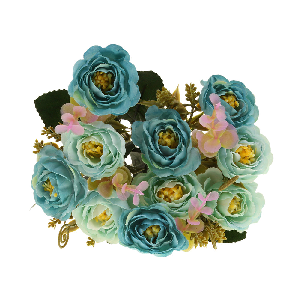 Maxbell Maxbell 2 Bunches Artificial Roses 5-Branch Simulation Flowers Plant Home Decor-Blue